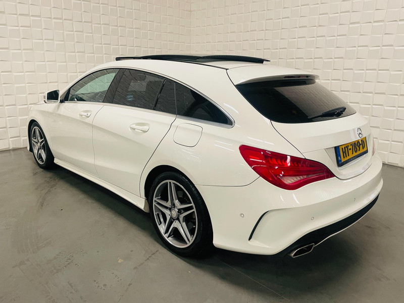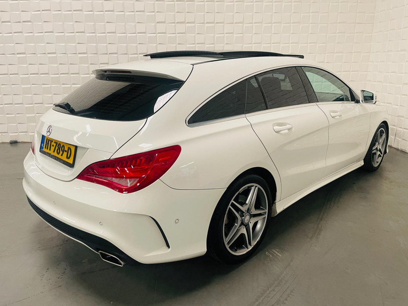 Uitmuntende prestaties, dynamische rijeigenschappen en bakken vol met rijplezier, deze Mercedes-Benz CLA-klasse Shooting Brake levert het allemaal. De AMG-styling geeft dit model een elegante en opvallende uitstraling. De aandrijving van deze Mercedes-Benz wordt verzorgd door een viercilinder motor en een automatische transmissie. Fijn, zo'n elektrisch bediend glazen panorama dak en die superhandige elektrisch bedienbare achterklep. En dan krijgt u het lederen interieur er ook nog bij! Tijdens de koude maanden is stoelverwarming een voorziening die u niet wilt missen. Xenonverlichting zorgt voor een krachtige en heldere lichtbundel. Ook 18 inch lichtmetalen velgen, sportinterieur, metallic lak, elektrisch bedienbare ramen achter en elektrisch bedienbare en verwarmde buitenspiegels horen tot de voorzieningen op deze auto.