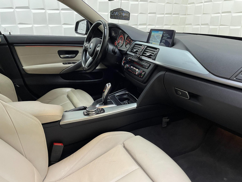 Deze BMW 4-serie Gran Coupé is 'connected'. Belangrijke functies worden permanent gemeten en zijn uit te lezen via een speciale app, ook op afstand. Het audio-installatiesysteem en het navigatiesysteem met harde schijf bedient u veilig met knoppen op het stuur. Het comfort wordt verhoogd door de aanwezige electronic climate control. Parkeersensoren zijn een waardevolle toevoeging aan deze auto. De sensoren waarschuwen tijdens het parkeren en voorkomen schade aan de auto. Om de veiligheid onderweg te verhogen, heeft deze BMW zowel een automatisch inschakelbare verlichting als een regensensor aan boord, zodat hij zelf de verlichting en de ruitenwissers kan inschakelen. Ook cruise control, keyless Go, buitentemperatuurmeter, lederen stuur en versnellingspook, isofix-aansluiting en centrale deurvergrendeling met afstandsbediening horen tot de voorzieningen op deze auto.