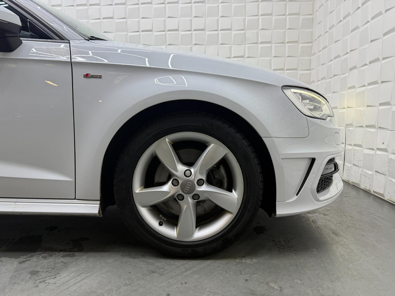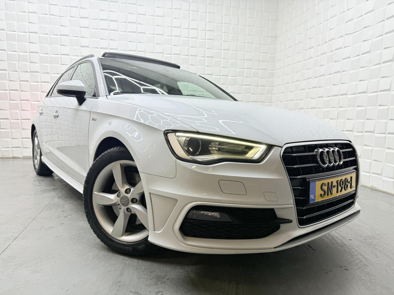 De Audi A3 Sportback vertegenwoordigt het beste van degelijk Duits design. S-Line styling benadrukt de sportieve functionaliteit van het ontwerp. De uitstekende prestaties van deze auto komen van de viercilinder motor en de automatische transmissie. Het stijlvolle lederen interieur geeft deze Audi A3 Sportback net dat beetje extra. Op koude en donkere dagen zijn de verwarmbare voorstoelen een uitkomst. De sportstoelen zorgen voor een strak uiterlijk én een uitstekende zitsteun. Het daglicht valt in overvloed via het elektrisch bediende panoramadak op het fraaie interieur. De gasontladingslampen van de xenonverlichting zorgen voor een krachtige en heldere lichtbundel. Bij de uitrusting van deze Audi horen onder meer 18 inch lichtmetalen velgen, sportonderstel, halflederen bekleding, warmtewerend glas, dakspoiler en elektrisch inklapbare buitenspiegels.