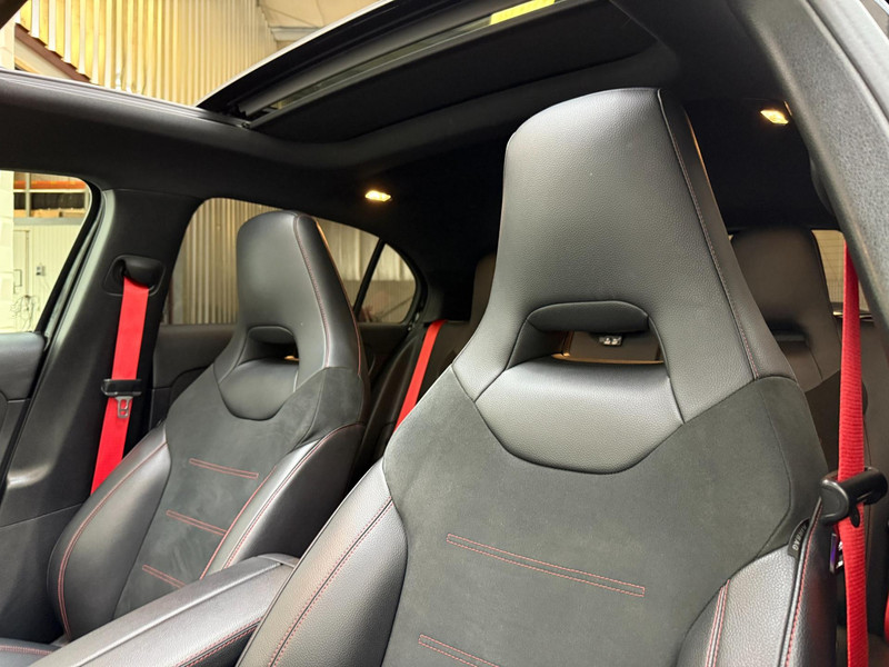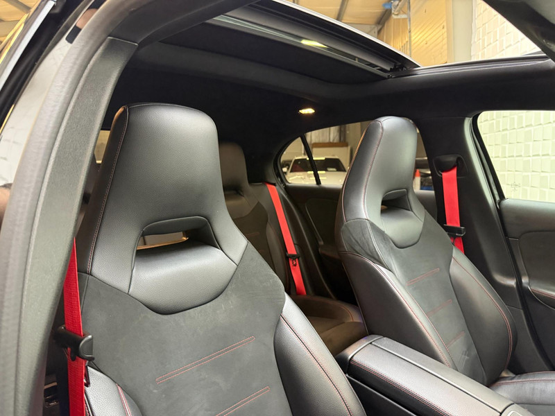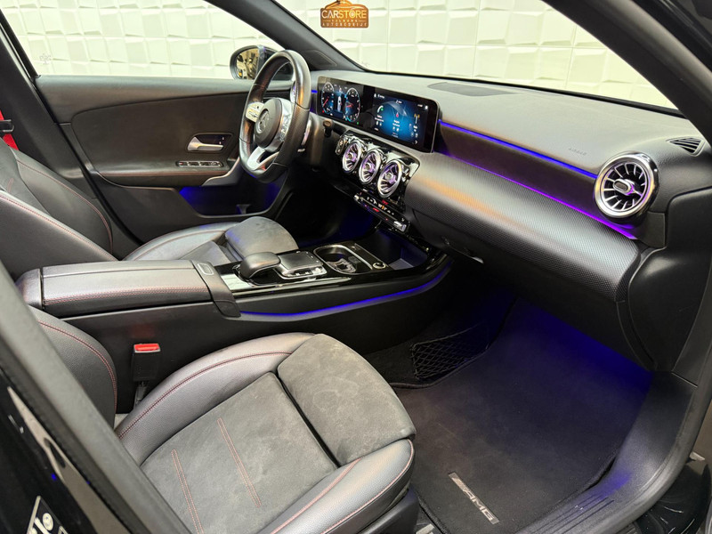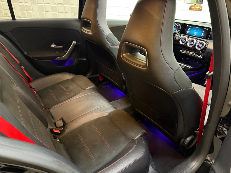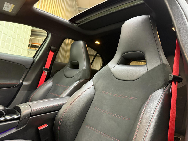 Bij het ontwerpen van de Mercedes-Benz A-klasse stonden uw comfort en uw veiligheid centraal. De AMG-styling geeft deze auto een bijzonder karakter en staat voor sportiviteit en exclusiviteit. De aandrijving van deze Mercedes-Benz wordt verzorgd door een viercilinder motor en een automatische transmissie. Dankzij het elektrisch bediende glazen panorama dak en het heerlijke lederen interieur is het soms bijna jammer dat u op uw bestemming moet uitstappen. Zit u goed? De stoelen zijn eenvoudig instelbaar dankzij de elektrische bediening met geheugen. Met matrix LED-verlichting rijdt u eigenlijk altijd met groot licht, dus maximaal zicht. Toch is verblinden er niet bij, want het systeem regelt de verlichting zo dat tegenliggers er geen last van hebben. In deze auto profiteert u onder andere ook van: 19 inch lichtmetalen velgen, AMG-styling, warmtewerend glas, in delen neerklapbare achterbank, verstelbare lendensteunen en variabele stuurbekrachtiging.