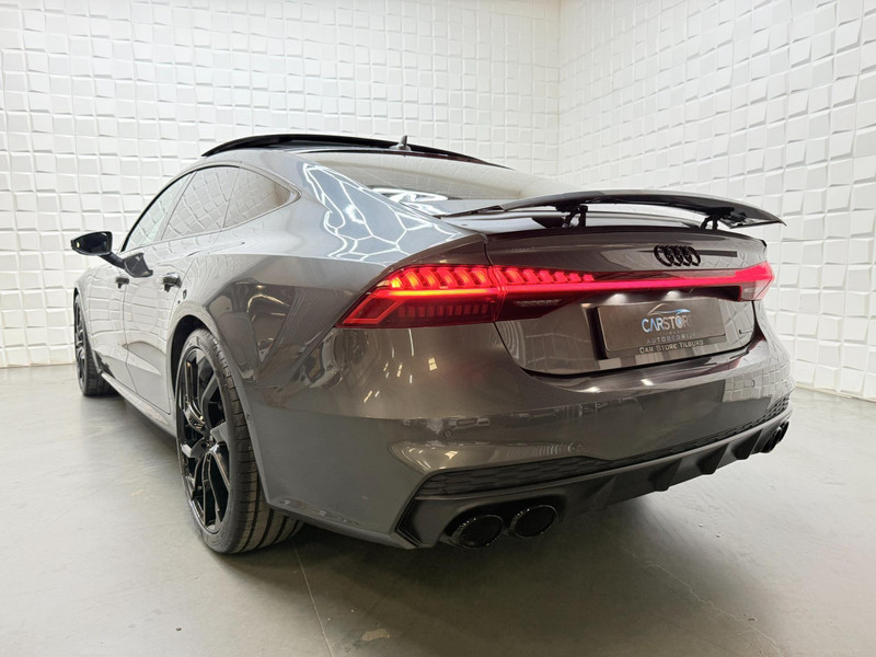 De Audi A7 Sportback vertegenwoordigt het beste van degelijk Duits design. De S-Line styling voegt een aantal uitgesproken sportieve accenten toe. Een krachtige motor geeft deze auto zijn sportieve prestaties. Een mooie, constante en solide ligging op de weg: dat is het voordeel van luchtvering. 4x4, 4WD... Deze auto staat maximaal stevig op de banden dankzij de vierwielaandrijving. Het lederen interieur geeft deze auto luxe en klasse. Neem plaats op de comfortabele stoelen. Dankzij de elektrische bediening en het geheugen is het eenvoudig om hierin de beste zitpositie te vinden. Het interieur lijkt groter en ruimtelijker dankzij het elektrisch bedienbare glazen panoramadak. De elektrisch bedienbare achterklep opent met een druk op de knop. Bij de rijke uitrusting horen ook 21 inch lichtmetalen velgen, sportonderstel, adaptieve LED-koplampen, warmtewerend glas, in delen neerklapbare achterbank en LED-achterlichten.