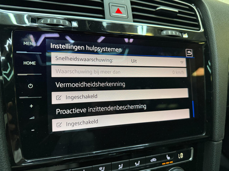 De nieuwste veiligheidssystemen komen in deze Volkswagen Golf samen. Onderweg zorgt verkeersborddetectie ervoor dat u geen waarschuwingsbord mist. Voorzien van het Lane-keeping systeem. Ofwel: blijf automatisch in je baan. De actieve dodehoekdetectie minimaliseert het gevaar van ongelukken wanneer u afslaat of inhaalt. Ook helpen het accident avoidance system, forward collision warning system, hill hold functie, brake assist, vermoeidheidsherkenning en bandenspanningcontrolesysteem, uw rit tot een veilige rit te maken.