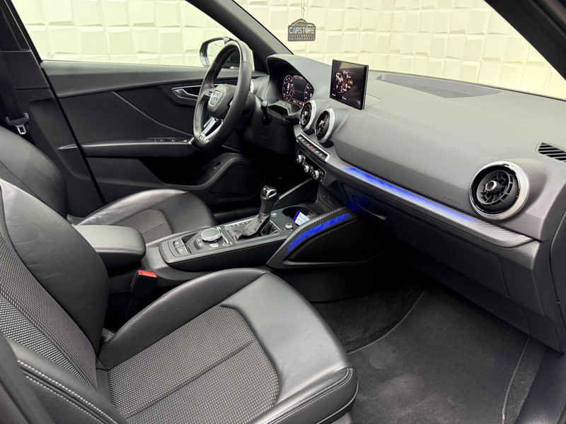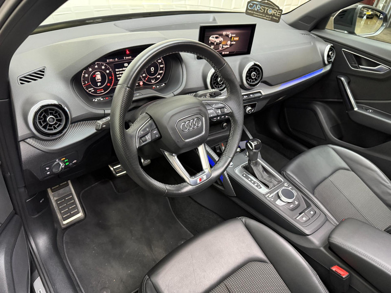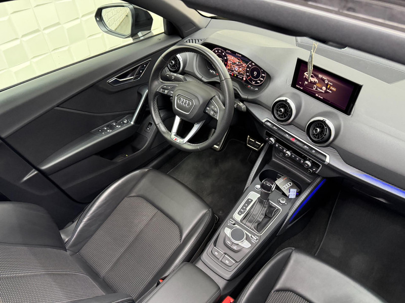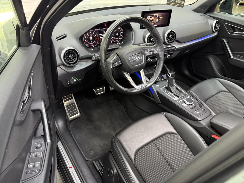 Het is niet alleen maar een stoer uiterlijk, deze Audi Q2 biedt ook de sportieve rijkwaliteiten die u zoekt. De S-Line styling voegt een aantal uitgesproken sportieve accenten toe. De aandrijving van deze Audi wordt verzorgd door een viercilinder motor en een automatische transmissie. Laat de zon maar schijnen door het elektrisch bediende glazen panorama dak en hou een handje over dankzij de elektrisch bedienbare achterklep. Niks vergeten? O ja toch: het lederen interieur moeten we zeker even noemen. U past de stoelen moeiteloos aan, ze zijn elektrisch in te stellen en hebben bovendien een geheugen. De koplampen met matrix LED-verlichting zijn het hoogst haalbare op het gebied van autoverlichting. Natuurlijk behoren 19 inch lichtmetalen velgen, sportonderstel, halflederen bekleding, warmtewerend glas, in delen neerklapbare achterbank en LED-achterlichten ook tot de uitrusting van deze complete auto.