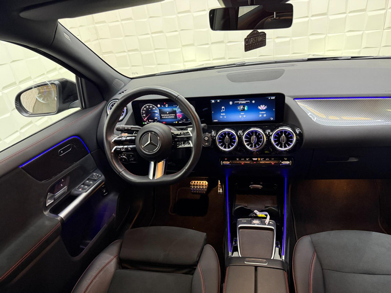 Dit is niet zomaar een Mercedes-Benz GLA-klasse. De hoge prestaties van de motor, het strak afgestelde onderstel en de uitgekiende verhoudingen van de transmissie staan garant voor bergen rijplezier. De AMG-styling accentueert het sportieve karakter van deze Mercedes-Benz. De aandrijving van deze Mercedes-Benz wordt verzorgd door een viercilinder motor en een automatische transmissie. Met één klik ontgrendelt u de elektrisch bedienbare achterklep, die voor u openzwaait. Mooi hoe deze auto slim en praktisch nut koppelt aan een stijlvolle binnenkant. Heeft u het lederen interieur al gezien? Behaaglijk onderweg zijn? Als bestuurder geniet u van de verwarmbare voorstoelen. Net als uw bijrijder! U blijft ook in de scherpe bochten goed ondersteund door de fraaie sportstoelen. Voorzien van matrix LED-verlichting. De auto dimt precies dat deel van de lichtstraal waar de voor- of tegenliggers in rijden. De overige segmenten blijven aan en verlichten de weg. Ook is de auto voorzien van: 19 inch lichtmetalen velgen, AMG-styling, extra getint glas, in delen neerklapbare achterbank, LED-achterlichten en verstelbare lendensteunen.