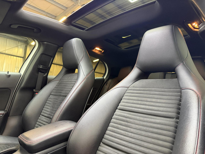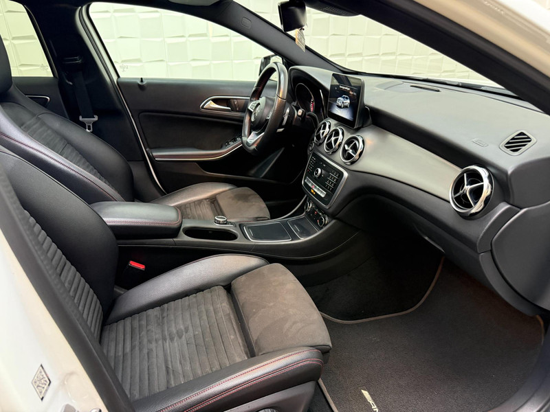 U merkt het aan de look and feel van deze auto: dit is kwaliteit. De Mercedes-Benz GLA-klasse is ontworpen volgens de Duitse opvattingen van kwaliteit en degelijkheid, maar biedt tegelijk een hoge mate van comfort en uitstekende rijkwaliteiten. De AMG-styling accentueert het sportieve karakter van deze Mercedes-Benz. De aandrijving van deze Mercedes-Benz wordt verzorgd door een viercilinder motor en een automatische transmissie. Topklasse: daar hoort leren bekleding absoluut bij. ‘s Winters op pad gaan kan een behoorlijke uitdaging zijn. Daarom is deze Mercedes-Benz GLA-klasse voorzien van weldadige verwarmbare voorstoelen. Opvallend zijn de stoere sportstoelen, die zorgen voor een onwrikbare zit in de scherpe bochten. Volop licht en ruimtelijk gevoel geeft het elektrische bediende glazen panoramadak. Zoals u weet, liggen de autosleutels altijd onderin de boodschappentas die u sjouwt. Geen probleem bij deze Mercedes-Benz GLA-klasse. De token in uw jaszak wordt van dichtbij gesignaleerd door de keyless entry en alle sloten gaan automatisch open. Bij de uitrusting van deze auto horen onder meer 19 inch lichtmetalen velgen, sportonderstel, aluminium dakrailing, warmtewerend glas, verstelbare lendensteunen, pearl metallic lak, elektrisch bedienbare ramen achter, elektrisch inklapbare buitenspiegels, led-dagrijverlichting en in delen neerklapbare achterbank.