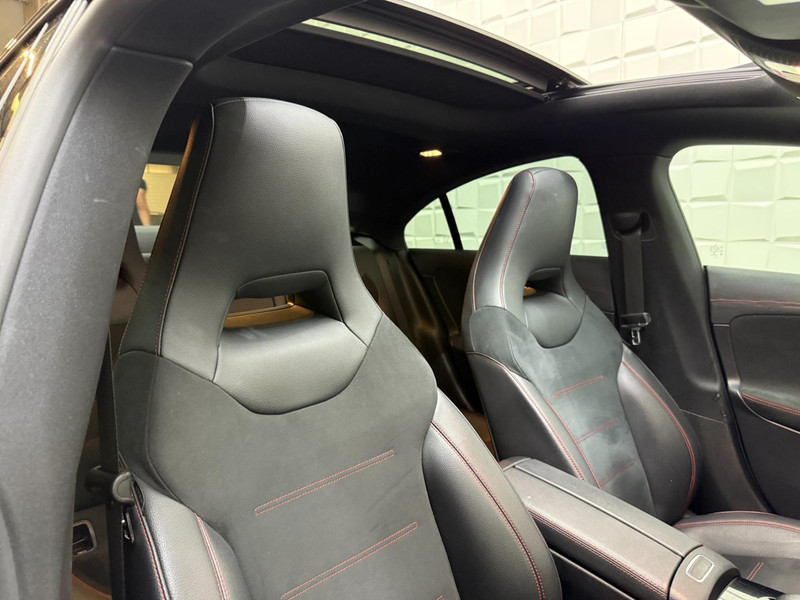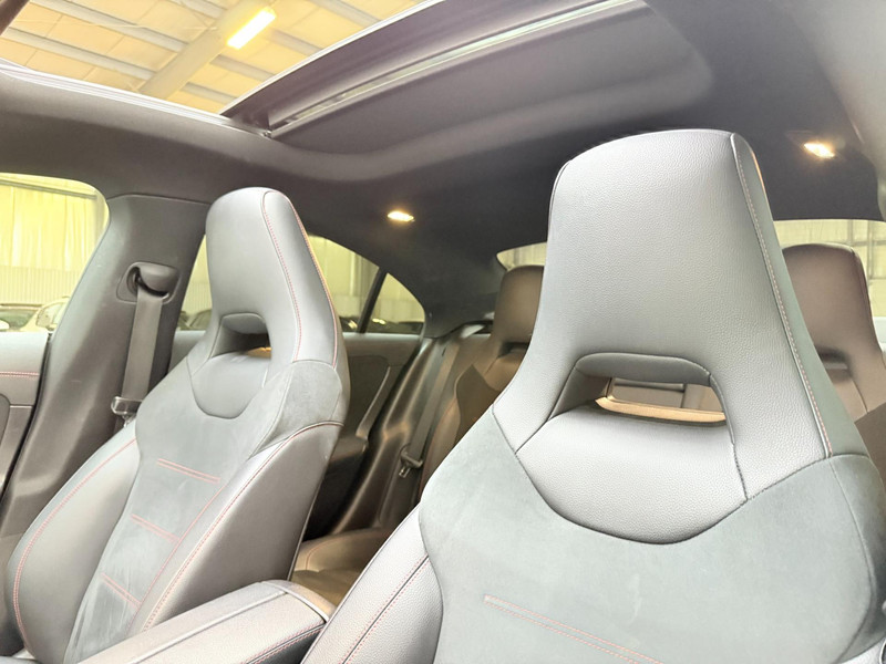 Uitmuntende prestaties, dynamische rijeigenschappen en bakken vol met rijplezier, deze Mercedes-Benz CLA-klasse levert het allemaal. Een beetje meer aandacht en een stoere uitstraling? Daar zorgt de AMG-styling voor. De aandrijving van deze Mercedes-Benz wordt verzorgd door een viercilinder motor en een automatische transmissie. Iedereen kan het beamen: een lederen interieur is levend en luxe. Om van comfort nog maar te zwijgen. En dat komt allemaal nog beter tot z'n recht dankzij het elektrisch bediende glazen panorama dak. U past de stoelen moeiteloos aan, ze zijn elektrisch in te stellen en hebben bovendien een geheugen. Voorzien van matrix LED-verlichting. De auto dimt precies dat deel van de lichtstraal waar de voor- of tegenliggers in rijden. De overige segmenten blijven aan en verlichten de weg. Bij de rijke uitrusting horen ook 18 inch lichtmetalen velgen, AMG-styling, extra getint glas, in delen neerklapbare achterbank, LED-achterlichten en verstelbare lendensteunen.