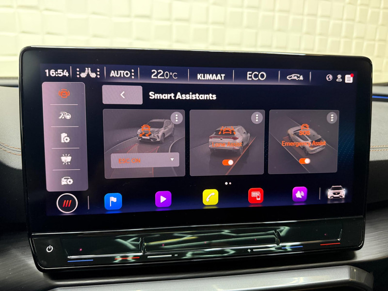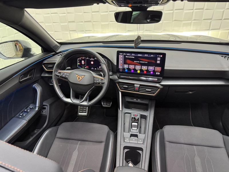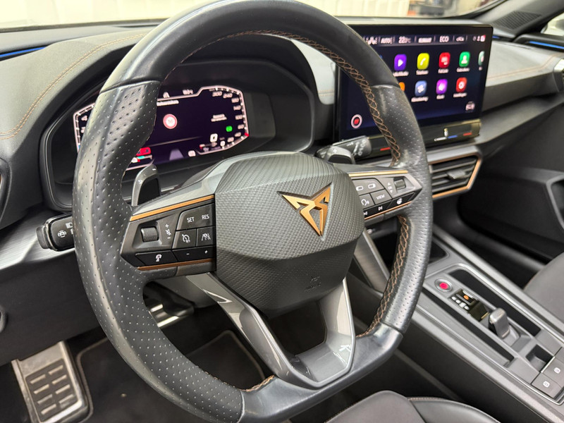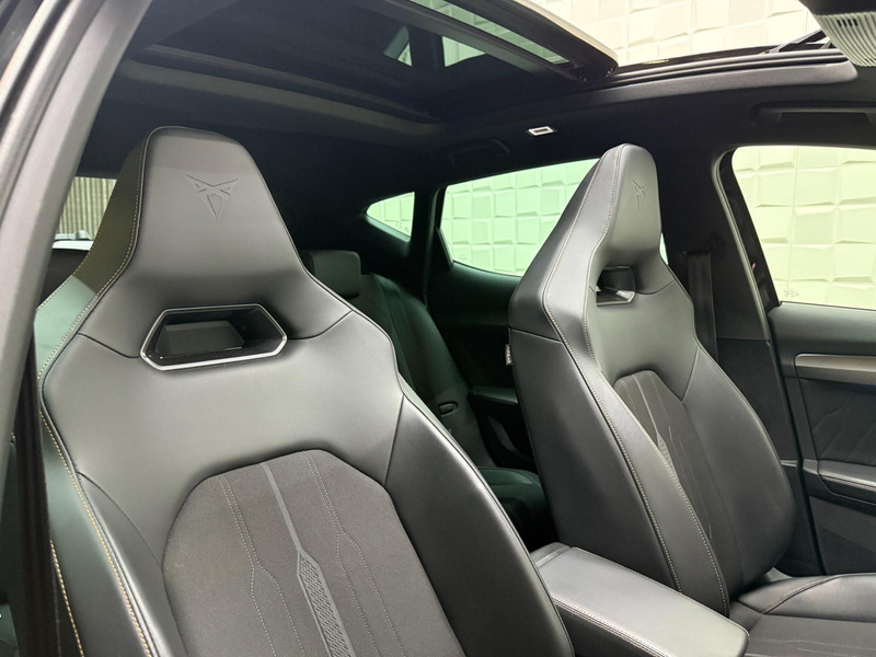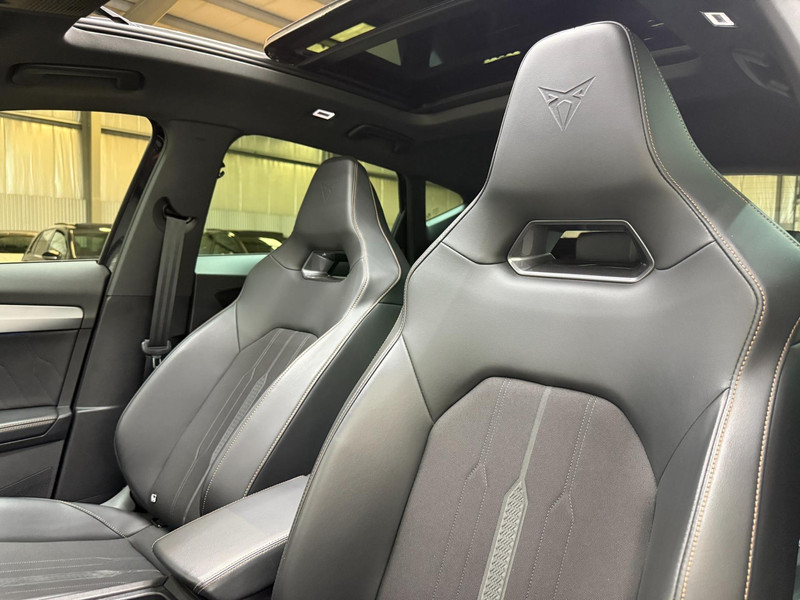 De geavanceerde technologie in deze Cupra is in staat om onderweg het verkeer om u heen te monitoren en er op te reageren. Zo hebt u als het ware een automatische co-piloot aan boord. De actuele snelheidslimiet, een inhaalverbod en andere verkeersborden. De verkeersborddetectie ondersteunt u tijdens elke rit. Indien u onbedoeld de rijstrook lijkt te verlaten, reageert het Lane-keeping systeem meteen en corrigeert. Ook als uw aandacht even verslapt, blijft de forward collision warning bij de wekker. Dreigt er een botsing met een voor- of tegenligger, dan waarschuwt het systeem direct. Bovenop deze veiligheidsfeatures heeft deze Cupra bovendien dodehoekdetectie, accident avoidance system, hill hold functie, vermoeidheidsherkenning en bandenspanningcontrolesysteem.