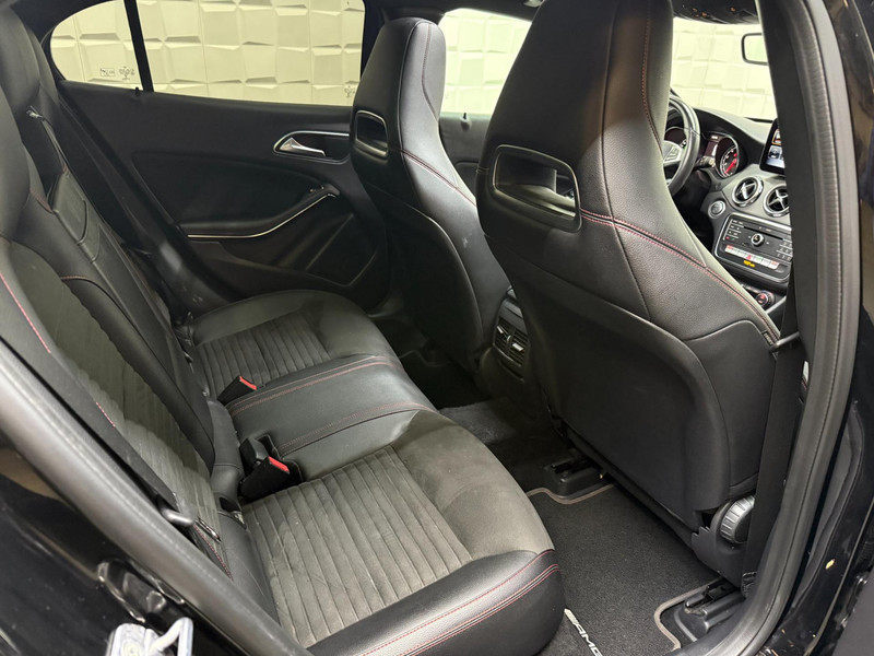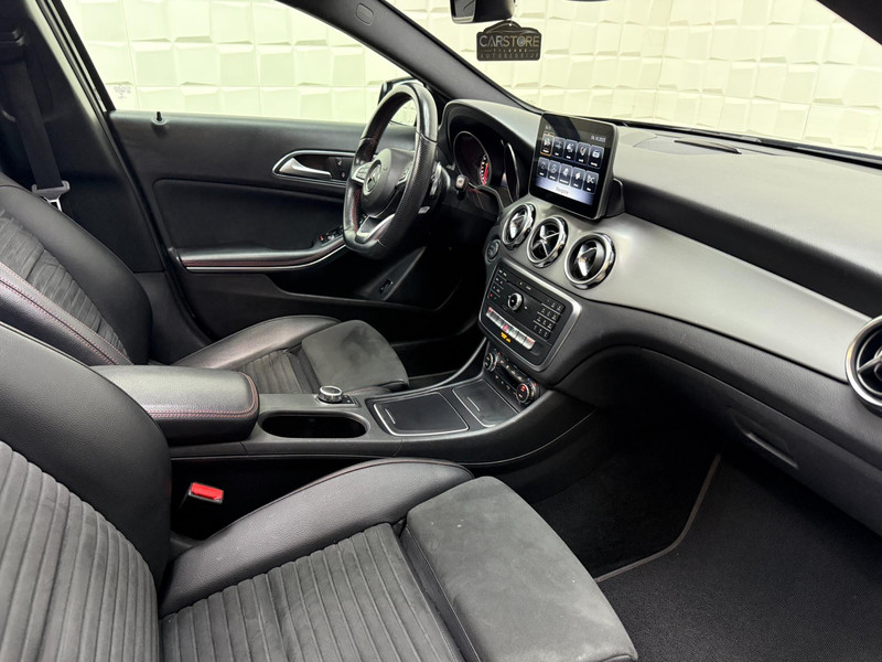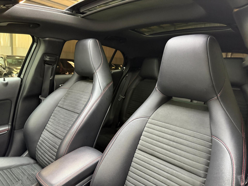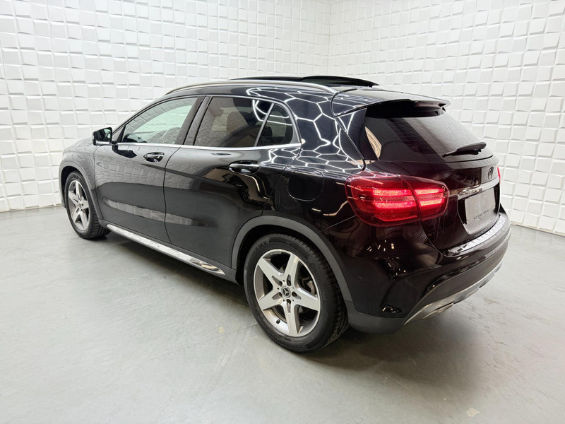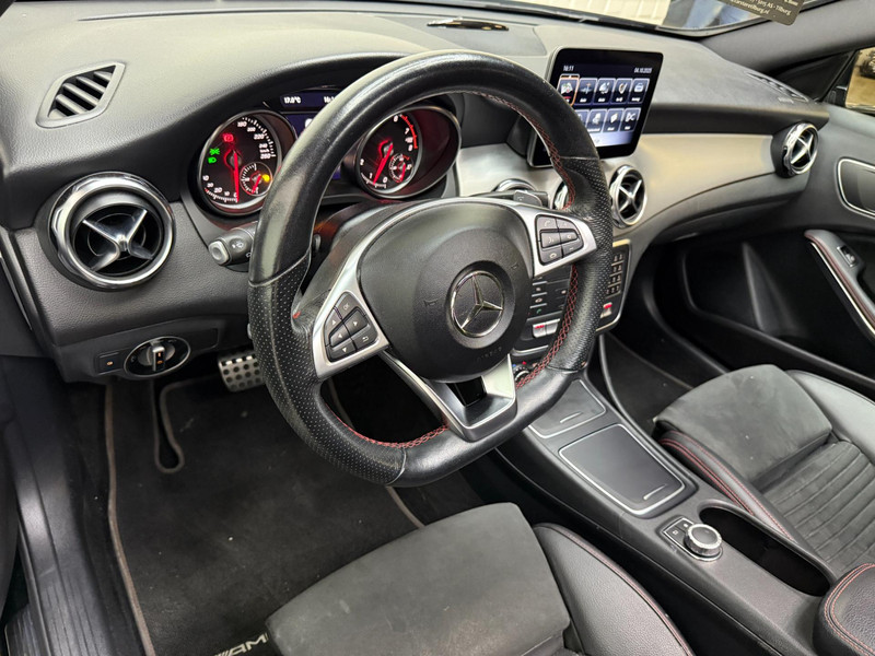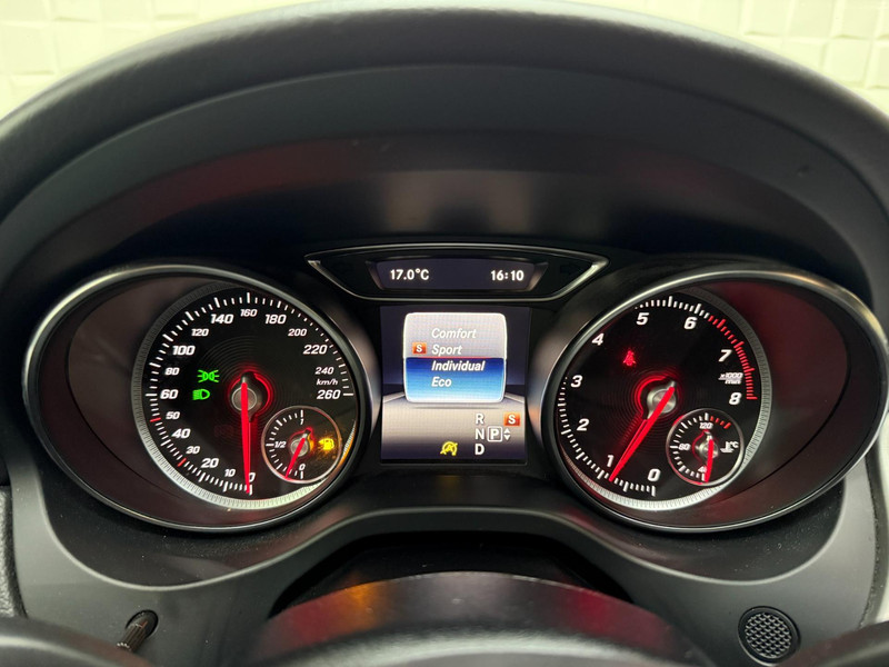 Alle technologie in de Mercedes-Benz GLA-klasse is er op gericht om uw rit veilig en gemakkelijk te laten verlopen. De uitgesproken AMG-styling voegt een reeks sportieve accenten aan de vormgeving toe. De aandrijving van deze Mercedes-Benz wordt verzorgd door een viercilinder motor en een automatische transmissie. Van binnen ziet u een lederen interieur, een stijlvolle uitvoering. De verwarmbare voorstoelen benadrukken nog maar eens dat we hier te maken hebben met een regelrechte verwenauto voor bestuurder en bijrijder. Pittig rijden wordt nog comfortabeler dankzij de fraaie sportstoelen. Voor extra lichtinval en een frisse luchtstroom zorgt het elektrisch bediende panoramadak. De bagageruimte is toegankelijk via een comfortverhogende elektrische achterklep. Tot de voorzieningen van deze auto behoren LED koplampen, AMG-styling, sportonderstel, warmtewerend glas, in delen neerklapbare achterbank en verstelbare lendensteunen.