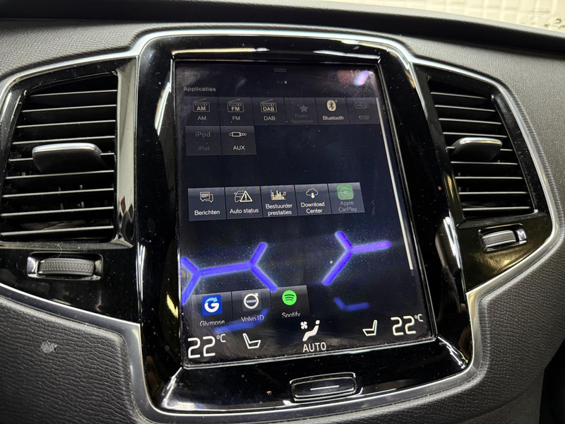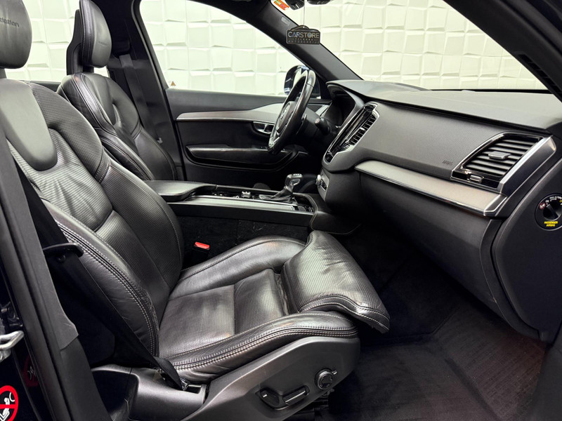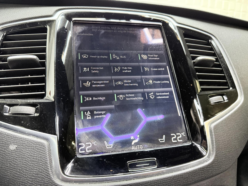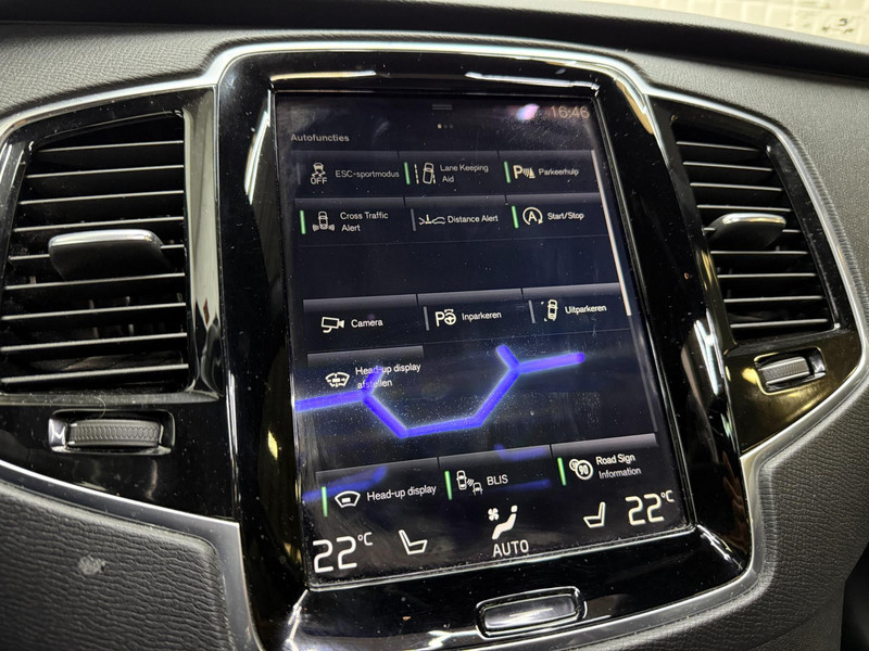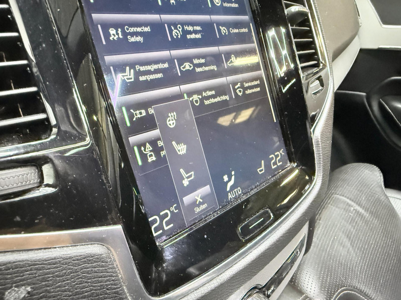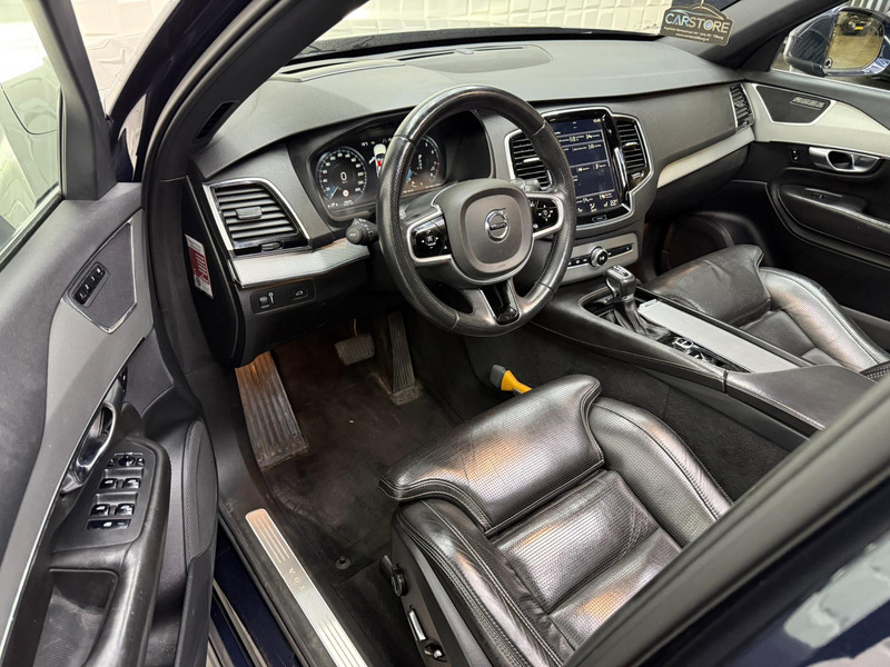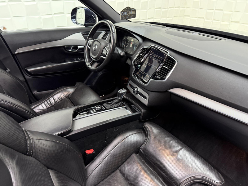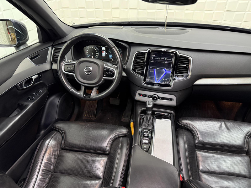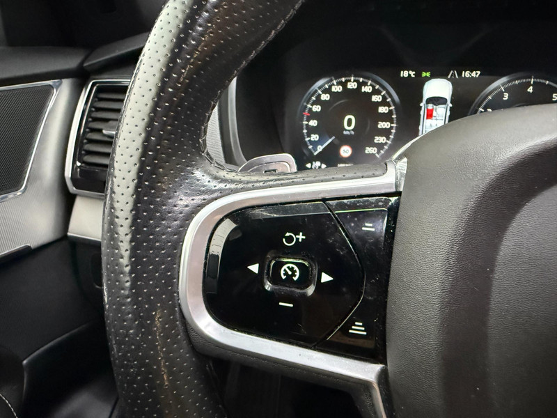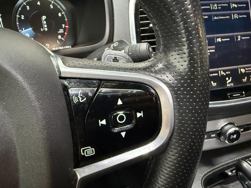 Met het digitale dashboard van deze auto is de aanpassing van uw cockpitinterface een fluitje van een cent. De 360 graden camera op deze auto wordt verzorgd door vier geavanceerde camera's. Het biedt garantie van uitstekende beeldkwaliteit. Met adaptive cruise control houdt deze auto automatisch afstand tot uw voorligger. Gemakkelijk en veilig is de spraakbediening voor het audio-installatiesysteem en het navigatiesysteem met harde schijf. Daarbij kunt u deze ook bedienen met de knoppen op het stuur. Ook over uw schouder ziet u onderweg niet alles wat er aan de achterzijde gebeurt. Daarom heeft deze Volvo XC90 een achteropkomend verkeer waarschuwing. En deze auto heeft ook automatische airconditioning, schakel flippers aan het stuur, regensensor, keyless entry, buitentemperatuurmeter en automatisch dimmende buitenspiegels als standaard uitrusting.
