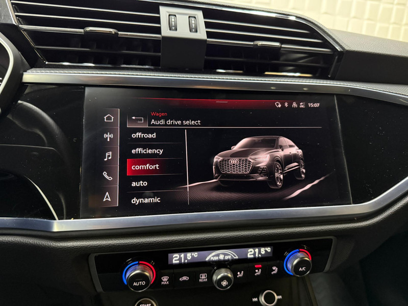 Dit is niet zomaar een Audi Q3 Sportback. De hoge prestaties van de motor, het strak afgestelde onderstel en de uitgekiende verhoudingen van de transmissie staan garant voor bergen rijplezier. Fan van S-Line styling? Dat komt mooi uit, want deze is lekker sportief uitgevoerd. De aandrijving van deze Audi wordt verzorgd door een viercilinder motor en een automatische transmissie. Heerlijk comfortabel zitten, en genieten van stijlvolle kwaliteit? Deze auto heeft een fraai lederen interieur. De sportstoelen geven het interieur een super strakke look. Comfort, licht en het complete gevoel van ruimte wordt verzorgd door het elektrisch bediende panoramadak. De elektrische achterklep opent met een druk op de knop, zodat u gemakkelijk toegang heeft tot de bagageruimte. De koplampen met matrix LED-verlichting geven daglichtkwaliteit zonder tegenliggers te hinderen. Ook 20 inch lichtmetalen velgen, sportonderstel, halflederen bekleding, warmtewerend glas, in delen neerklapbare achterbank en LED-achterlichten zijn aan boord.