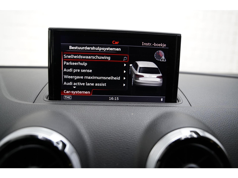Zoals u mag verwachten van deze Audi A3 Sportback is hij uitgerust met een reeks aan actieve veiligheidssystemen. Belangrijk voor uw veiligheid en die van uw passagiers is de verkeersbord-detectie in deze auto. Met het Lane-keeping systeem komt u nooit per ongeluk buiten de rijstrook. Met het accident avoidance system heeft u een extra paar ogen aan boord. Het systeem waarschuwt bij een dreigende aanrijding. Met voorzieningen als brake assist en bandenspanningcontrolesysteem, bent u altijd veilig onderweg.