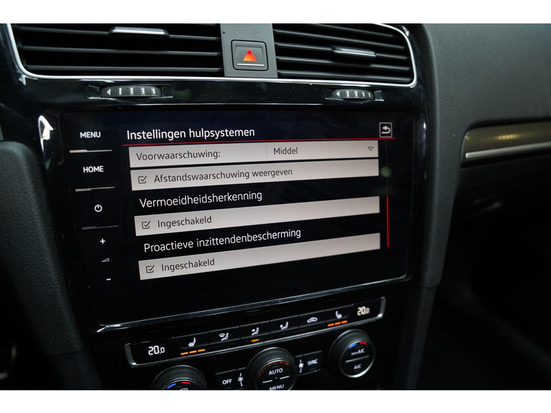 Zoals u mag verwachten van deze Volkswagen Golf is hij uitgerust met een reeks aan actieve veiligheidssystemen. Dat de auto steeds meer taken van de bestuurder overneemt, merkt u bijvoorbeeld aan het systeem voor verkeersbord-detectie in deze auto. Met het Lane-keeping systeem gaat u nooit onbedoeld over de streep. Onbedoeld bumperkleven is er niet bij, dankzij de forward collision warning. Die waarschuwt direct als een botsrisico met uw voorligger dreigt. Verder is deze auto uitgerust met accident avoidance system, hill hold functie, brake assist, vermoeidheidsherkenning en bandenspanningcontrolesysteem.