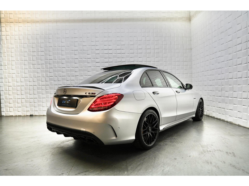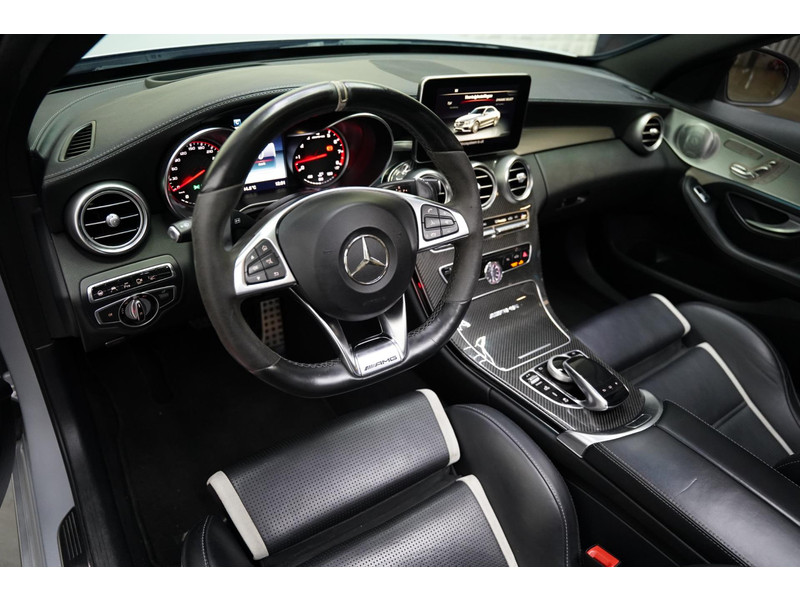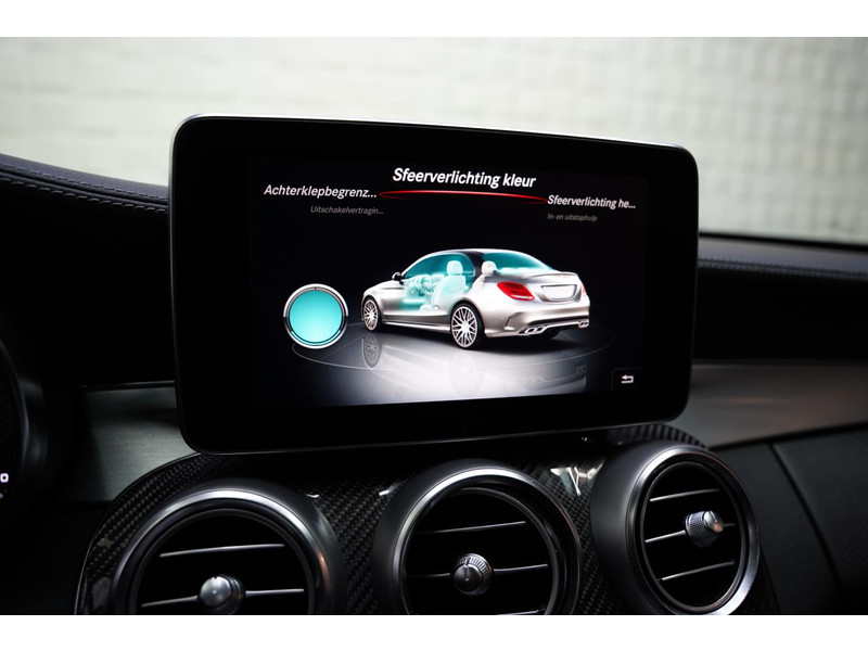 Alle technologie in de Mercedes-Benz C-klasse is er op gericht om uw rit veilig en gemakkelijk te laten verlopen. Met de kenmerkende AMG-styling toont deze Mercedes-Benz zich van zijn sportieve kant. Trap het gaspedaal in en voel de geweldige acceleratie van deze auto. Zon en frisse lucht krijgen vrij spel dankzij het elektrisch bediende glazen panorama dak; de elektrisch bedienbare achterklep maakt het u gemakkelijk en u voelt zich omgeven door luxe van het lederen interieur! Zit u goed? De stoelen zijn eenvoudig instelbaar dankzij de elektrische bediening met geheugen. Tot de uitrusting behoren ook 19 inch lichtmetalen velgen, sportonderstel, adaptief dempingsysteem, geluidsisolerende ramen, actieve hoofdsteunen, metallic lak, verwarmde ruitensproeiers, elektrisch bedienbare ramen achter, elektrisch inklapbare buitenspiegels, led-dagrijverlichting en in delen neerklapbare achterbank.