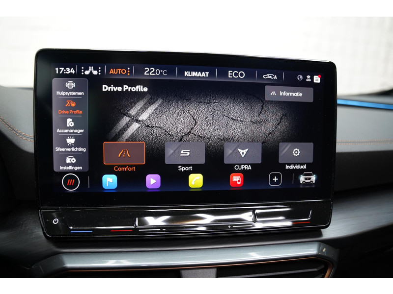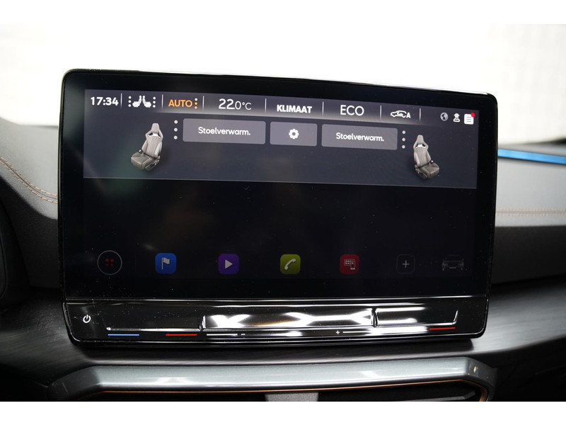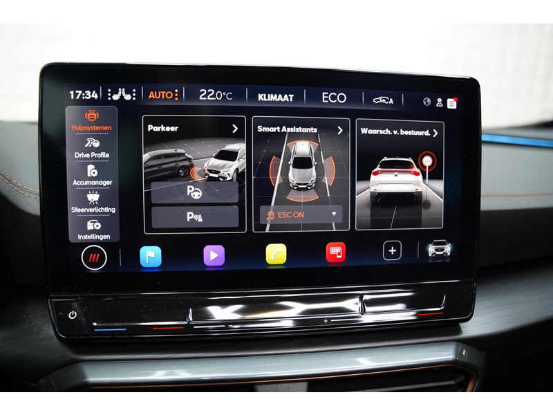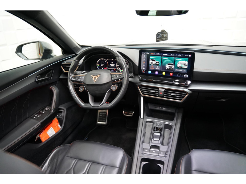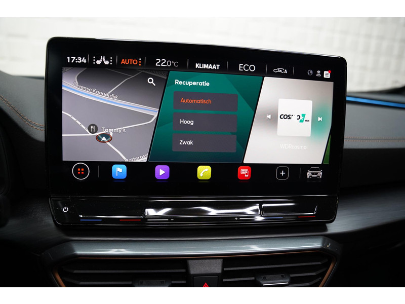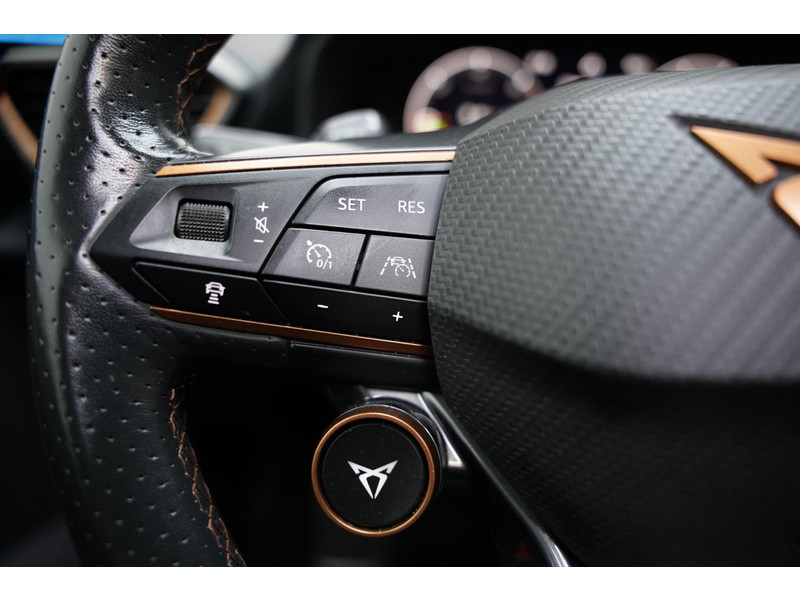 Voor een goed en duidelijk overzicht onderweg is het digitale dashboard uitermate slim ingedeeld. Of u nu achteruit rijdt, parkeert of een smalle straat inslaat, de 360 graden camera op deze auto, mogelijk gemaakt door vier camera's, biedt een perfect beeld van uw omgeving. Adaptive cruise control is veilig en comfortabel. De snelheidsregelaar houdt automatisch afstand tot het voertuig dat voor u rijdt. Spraaksturing luistert naar uw stem en bedient de belangrijkste voertuigfuncties. Fijn, zo'n trekhaak. Maar niet constant nodig. Daarom heeft deze CUPRA Formentor een elektrisch inklapbare trekhaak. De uitrusting van deze CUPRA is met connected drive services, origineel navigatiesysteem, automatische airconditioning, draadloos opladen, DAB ontvangst en regensensor behoorlijk compleet.
