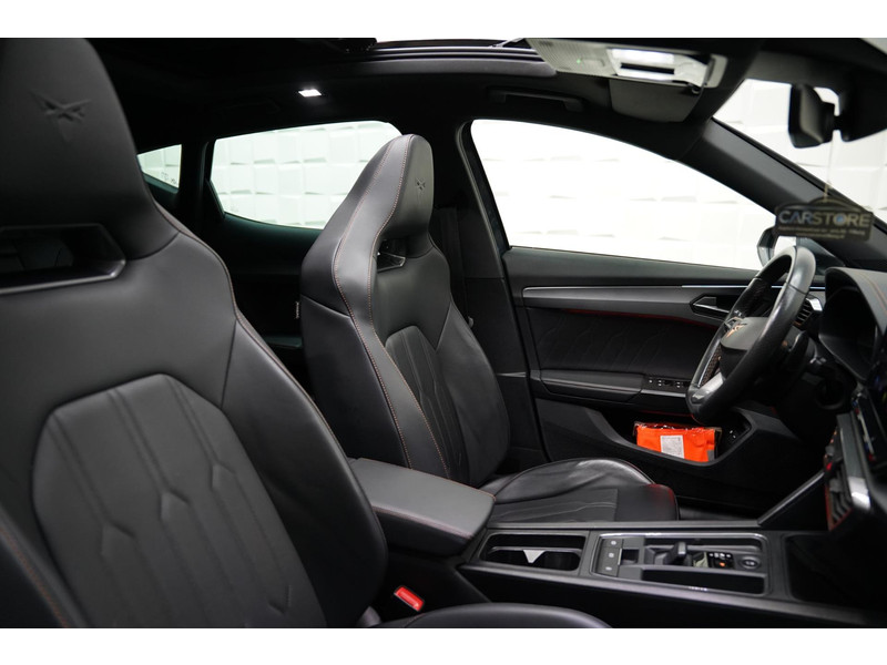 Ontspannen en zorgeloos autorijden, dat doet u met deze CUPRA Formentor. Met een viercilinder motor en een automatische transmissie beschikt deze CUPRA over uitstekende prestaties. Het lederen interieur springt meteen in het oog; maar wat dacht u van het ultragemakkelijke elektrisch bediende glazen panorama dak en de elektrisch bedienbare achterklep? Neem plaats op de comfortabele stoelen. Dankzij de elektrische bediening en het geheugen is het eenvoudig om hierin de beste zitpositie te vinden. Een verwarmd stuurwiel overbodige luxe? Wacht maar tot het kouder wordt! Dankzij de matrix LED-verlichting geven de koplampen ook in het donker daglicht. Ook 20 inch lichtmetalen velgen, extra getint glas, in delen neerklapbare achterbank, LED-achterlichten, verstelbare lendensteunen en snelheidsafhankelijke stuurbekrachtiging zijn aan boord.