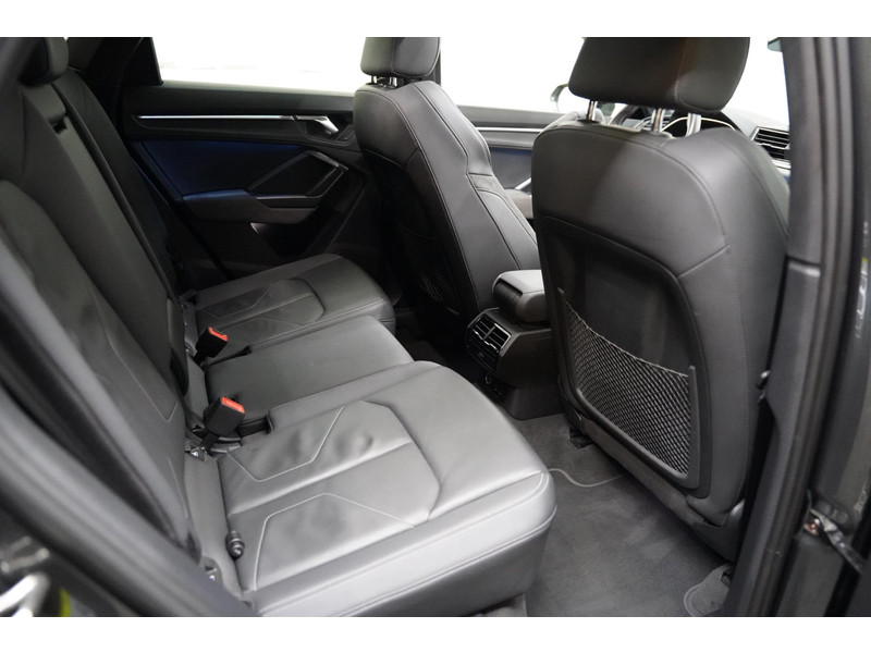 Combineer de functionaliteit van een gezinsauto met de prestaties van een sportwagen, en je krijgt deze sportieve Audi Q3 Sportback. Een beetje meer aandacht en een stoere uitstraling? Daar zorgt de S-Line styling voor. De luxe van het lederen interieur, gecombineerd met het gemak van het elektrisch bediende glazen panorama dak en de superhandige elektrisch bedienbare achterklep zorgen voor een wel heel complete uitvoering. Dankzij de stoelverwarming heeft u in deze auto nooit meer last van een koude rug of koude benen. De slimme koplampen gebruiken de allernieuwste matrix LED-verlichting. Altijd maximaal zicht, nooit verblinding bij de tegenligger. Bij de uitrusting van deze auto horen onder meer 20 inch lichtmetalen velgen, sportonderstel, halflederen bekleding, warmtewerend glas, in delen neerklapbare achterbank en LED-achterlichten.