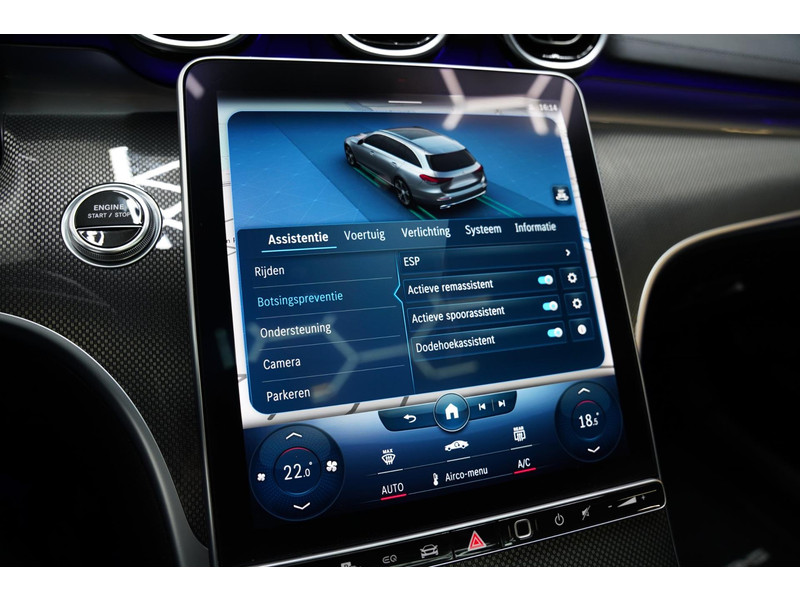 Het rijden met deze Mercedes-Benz wordt nog meer ontspannen dankzij de innovatieve technieken die onderweg over uw veiligheid waken. Onderweg zorgt verkeersborddetectie ervoor dat u geen waarschuwingsbord mist. Deze Mercedes-Benz C-klasse Estate is ook behulpzaam als het gaat om een rechte koers. Het Lane-keeping systeem signaleert en corrigeert als u onbedoeld de rijstrooklijnen dreigt te overschrijden. De dode hoek is een van de gevaarlijkste zones van elke auto. Daarom is deze Mercedes-Benz C-klasse Estate voorzien van een actieve dodehoekdetectie. De auto is ook uitgerust met accident avoidance system, forward collision warning system, hill hold functie, brake assist, vermoeidheidsherkenning en bandenspanningcontrolesysteem.