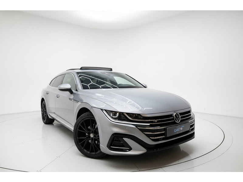 Alle technologie in de Volkswagen Arteon Shooting Brake is er op gericht om uw rit veilig en gemakkelijk te laten verlopen. De R-Line styling maakt deze Volkswagen Arteon Shooting Brake echt áf. Een belangrijke eigenschap van iedere Volkswagen is zijn duurzaamheid. Dat ziet u ook aan deze Arteon Shooting Brake. Met een viercilinder motor en een automatische transmissie beschikt deze Volkswagen over uitstekende prestaties. Eén blik naar binnen bewijst het al: pure klasse, onder meer dankzij het lederen interieur. Lekker hoor, die verwarmbare voorstoelen. Helemaal op koude dagen. Bovendien krijgen uw rug en die van uw bijrijder desgewenst extra aandacht door de massagefunctie. Zit u goed? De stoelen zijn eenvoudig instelbaar dankzij de elektrische bediening met geheugen. Het daglicht valt in overvloed via het elektrisch bediende panoramadak op het fraaie interieur. De elektrische achterklep opent met een druk op de knop, zodat u gemakkelijk toegang heeft tot de bagageruimte. Dankzij de matrix LED-verlichting geven de koplampen ook in het donker daglicht. Bij de uitrusting van deze Volkswagen horen onder meer 20 inch lichtmetalen velgen, warmtewerend glas, in delen neerklapbare achterbank, LED-achterlichten, verstelbare lendensteunen en verwarmde ruitensproeiers.