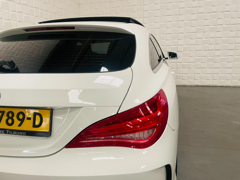 Uitmuntende prestaties, dynamische rijeigenschappen en bakken vol met rijplezier, deze Mercedes-Benz CLA-klasse Shooting Brake levert het allemaal. De AMG-styling geeft dit model een elegante en opvallende uitstraling. De aandrijving van deze Mercedes-Benz wordt verzorgd door een viercilinder motor en een automatische transmissie. Fijn, zo'n elektrisch bediend glazen panorama dak en die superhandige elektrisch bedienbare achterklep. En dan krijgt u het lederen interieur er ook nog bij! Tijdens de koude maanden is stoelverwarming een voorziening die u niet wilt missen. Xenonverlichting zorgt voor een krachtige en heldere lichtbundel. Ook 18 inch lichtmetalen velgen, sportinterieur, metallic lak, elektrisch bedienbare ramen achter en elektrisch bedienbare en verwarmde buitenspiegels horen tot de voorzieningen op deze auto.