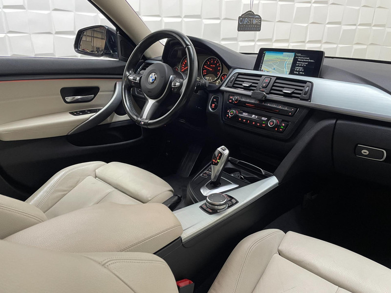 Deze BMW 4-serie Gran Coupé is 'connected'. Belangrijke functies worden permanent gemeten en zijn uit te lezen via een speciale app, ook op afstand. Het audio-installatiesysteem en het navigatiesysteem met harde schijf bedient u veilig met knoppen op het stuur. Het comfort wordt verhoogd door de aanwezige electronic climate control. Parkeersensoren zijn een waardevolle toevoeging aan deze auto. De sensoren waarschuwen tijdens het parkeren en voorkomen schade aan de auto. Om de veiligheid onderweg te verhogen, heeft deze BMW zowel een automatisch inschakelbare verlichting als een regensensor aan boord, zodat hij zelf de verlichting en de ruitenwissers kan inschakelen. Ook cruise control, keyless Go, buitentemperatuurmeter, lederen stuur en versnellingspook, isofix-aansluiting en centrale deurvergrendeling met afstandsbediening horen tot de voorzieningen op deze auto.
