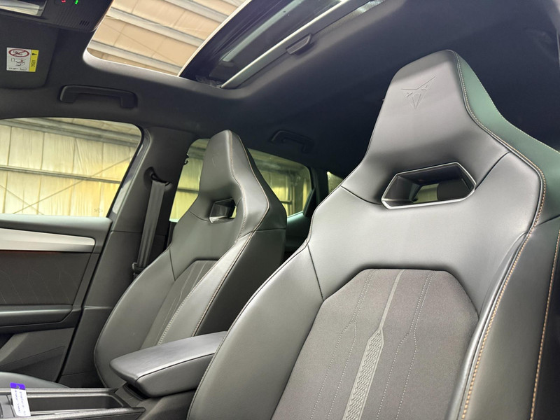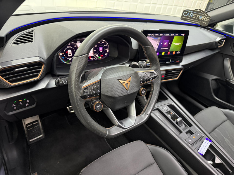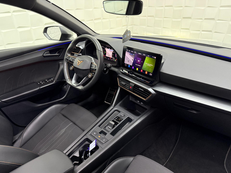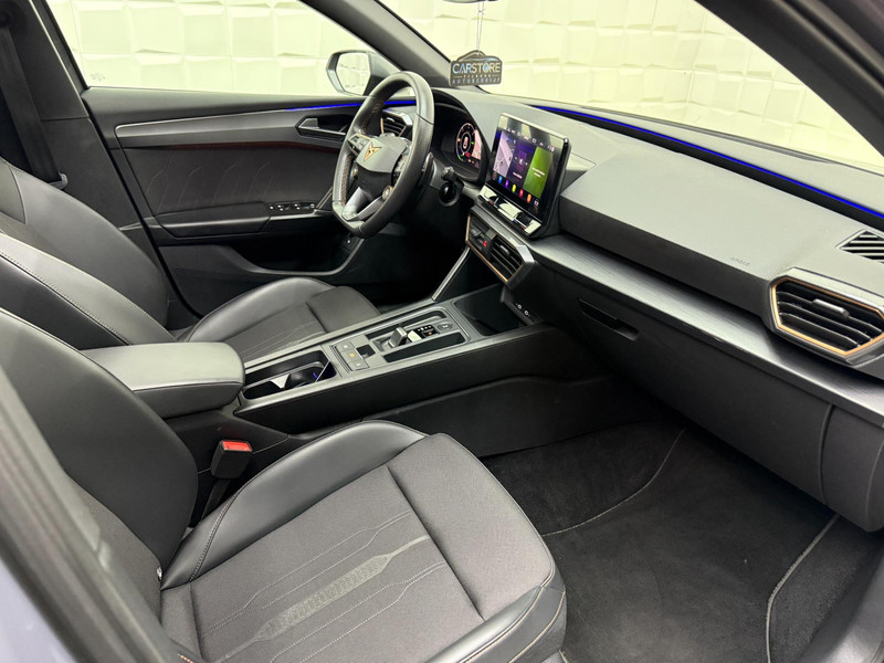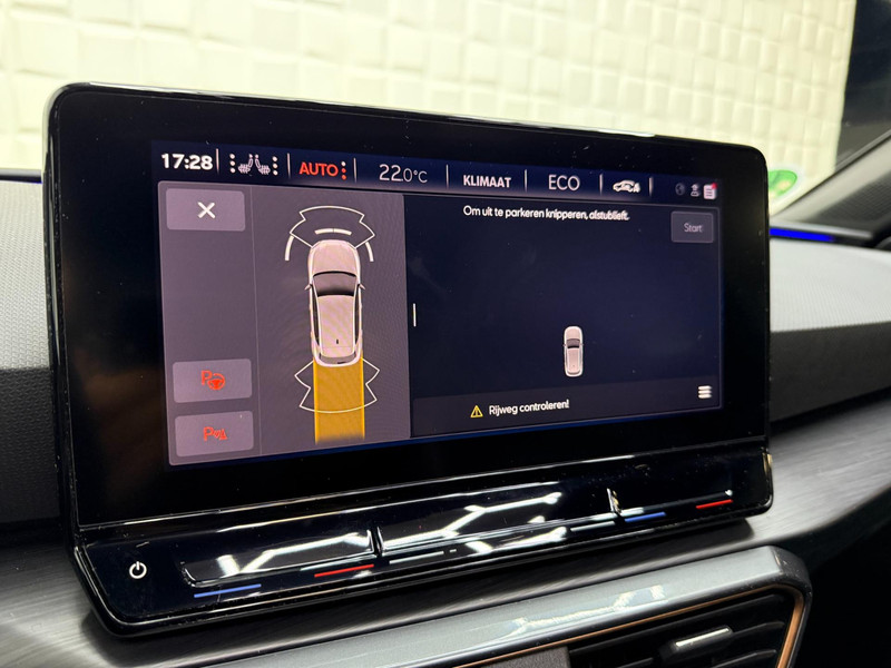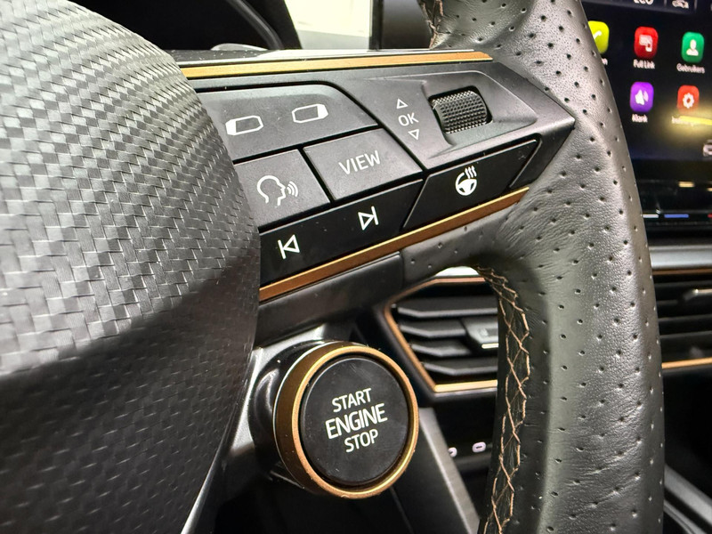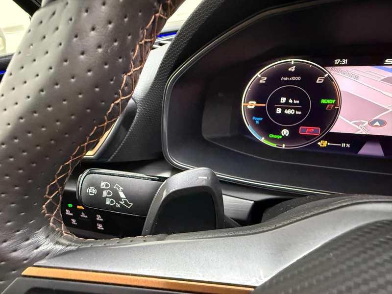 Alle ritinformatie en communicatie is gebundeld in één overzichtelijk digitale dashboard. Altijd achter zicht, nooit meer nekkramp! De achteruitrijcamera maakt het supermakkelijk. Met adaptive cruise control houdt de auto zelfstandig afstand tot uw voorligger. Een veiligheidsverhogende optie waarmee u comfortabel onderweg bent. Veilig en comfortabel rijden wordt nog eens versterkt door Connected Services, zodat u diverse vitale functies van de auto altijd kunt checken in de app. Een optie die de veiligheid verhoogt, is de bediening vanaf het stuur van het audio-installatiesysteem (met DAB-radio!) en het origineel navigatiesysteem. Als u wilt kunt u beiden zelfs met uw stem bedienen. Met automatische airconditioning, draadloos opladen, regensensor, keyless entry, buitentemperatuurmeter en automatisch dimmende buitenspiegels is deze CUPRA helemaal compleet.