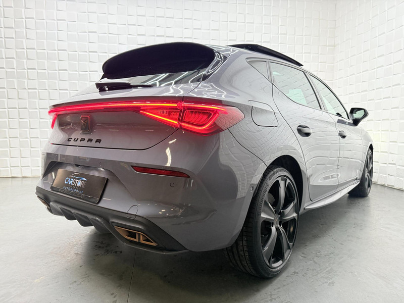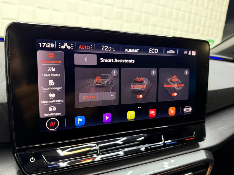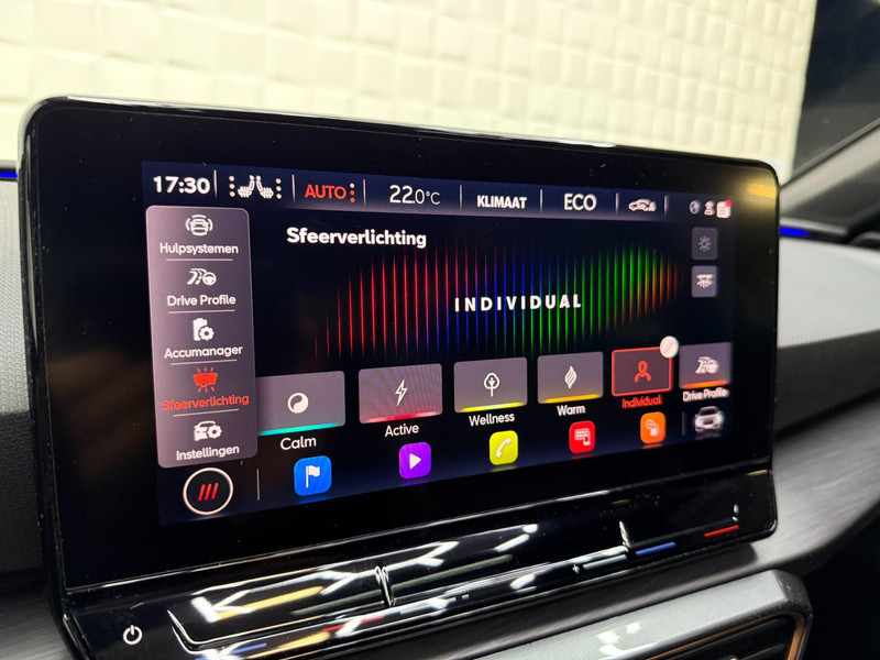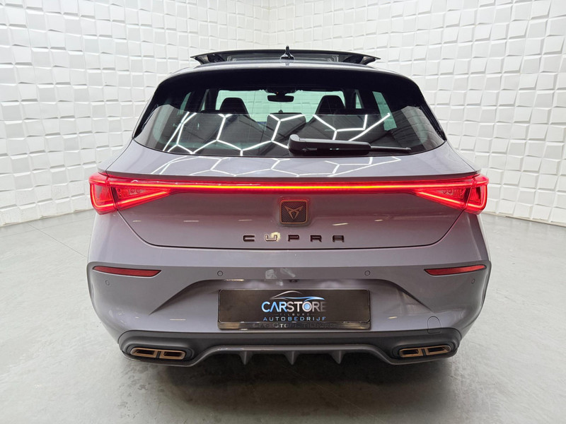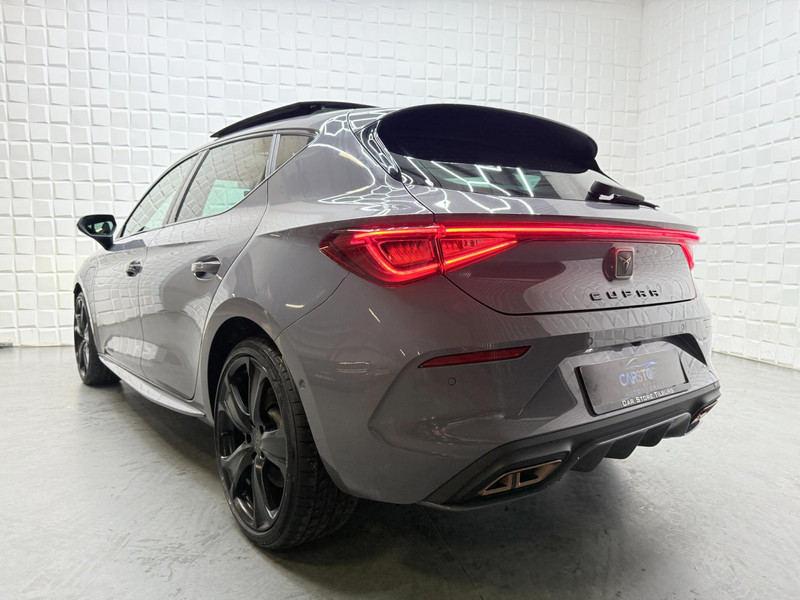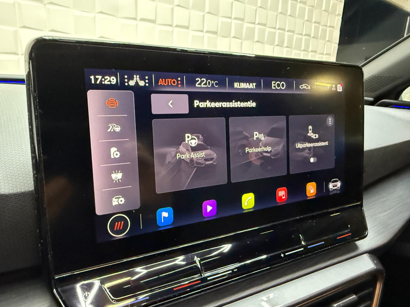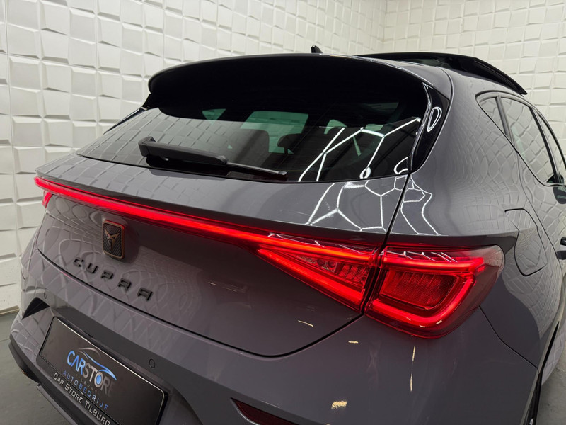Alle ritinformatie en communicatie is gebundeld in één overzichtelijk digitale dashboard. Altijd achter zicht, nooit meer nekkramp! De achteruitrijcamera maakt het supermakkelijk. Met adaptive cruise control houdt de auto zelfstandig afstand tot uw voorligger. Een veiligheidsverhogende optie waarmee u comfortabel onderweg bent. Veilig en comfortabel rijden wordt nog eens versterkt door Connected Services, zodat u diverse vitale functies van de auto altijd kunt checken in de app. Een optie die de veiligheid verhoogt, is de bediening vanaf het stuur van het audio-installatiesysteem (met DAB-radio!) en het origineel navigatiesysteem. Als u wilt kunt u beiden zelfs met uw stem bedienen. Met automatische airconditioning, draadloos opladen, regensensor, keyless entry, buitentemperatuurmeter en automatisch dimmende buitenspiegels is deze CUPRA helemaal compleet.