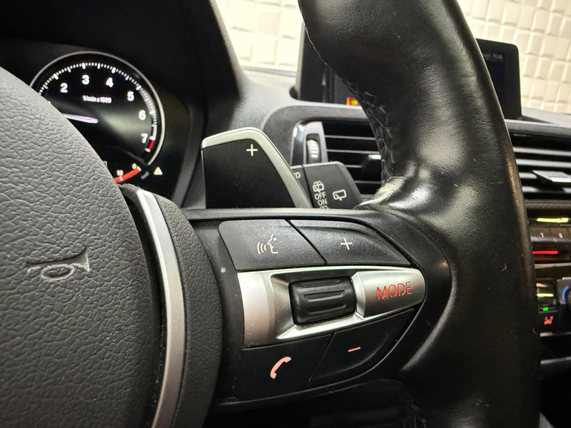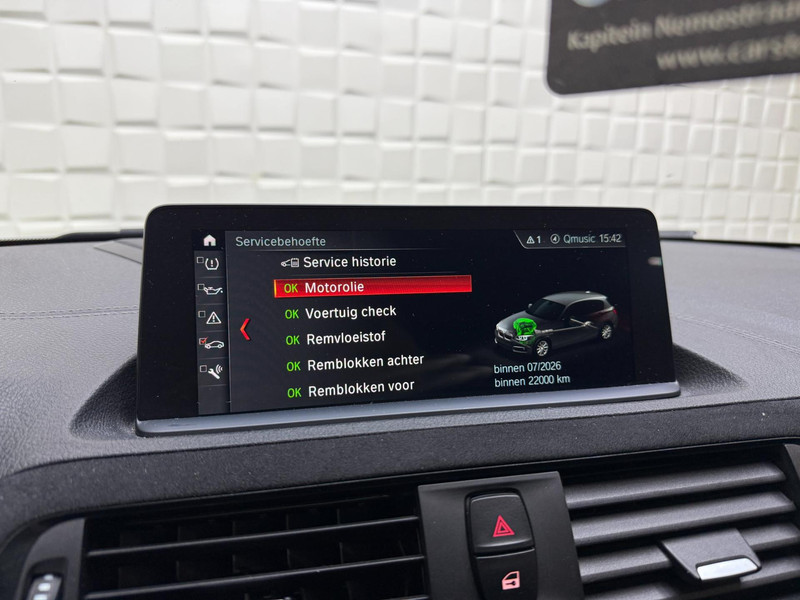 Bij het inparkeren hoeft u het laatste stukje niet te gokken: de achteruitrijcamera kijkt voor u uit. De auto's van vandaag rijden niet alleen subliem, maar luisteren ook goed. Via een speciale app kunt u overal diverse functies controleren en de status van de auto inzien. Het Harman/Kardon audiosysteem is afgestemd op het interieur van de auto. De geluidskwaliteit is onovertroffen. Aan boord van deze BMW 1-serie is een achteropkomend verkeer waarschuwing voor extra veiligheid. Automatische airconditioning regelt volautomatisch de temperatuur. U kiest de gewenste temperatuur en het systeem doet de rest. Ook dashboard met spraakbediening, Harman Kardon-audiosysteem, navigatiesysteem met harde schijf, schakel flippers aan het stuur, regensensor en cruise control horen tot de voorzieningen op deze auto.