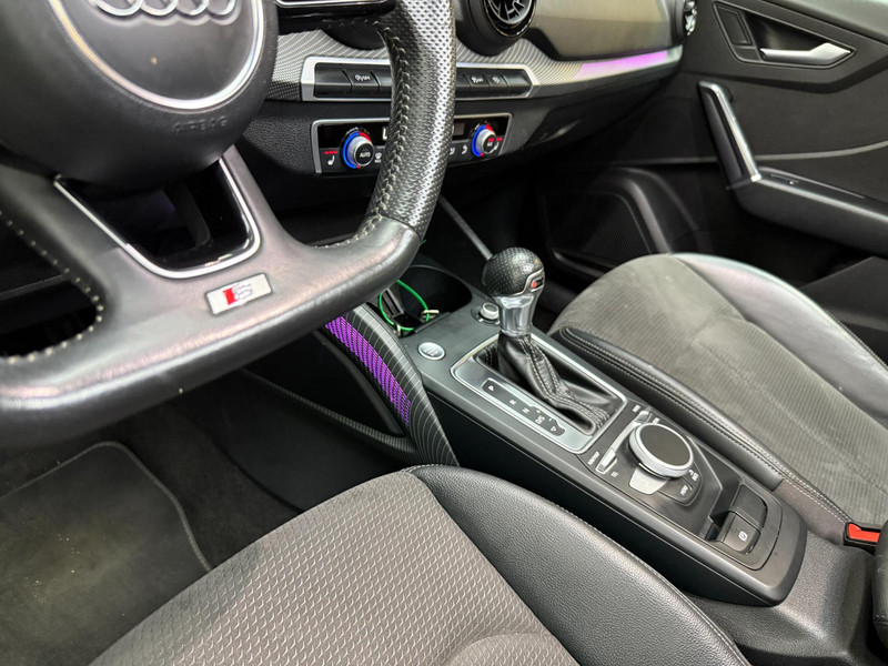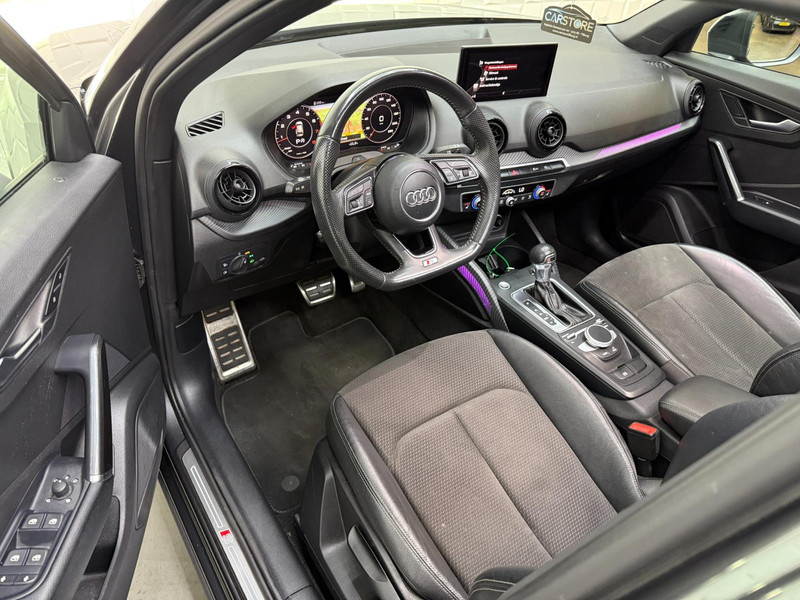 Dynamische styling, zorgvuldig afgewerkt met fraaie materialen en ontworpen met oog voor detail. De Audi Q2 is van binnen en van buiten een toonbeeld van Duits design. Fan van S-Line styling? Dat komt mooi uit, want deze is lekker sportief uitgevoerd. De aandrijving van deze Audi wordt verzorgd door een viercilinder motor en een automatische transmissie. Zon en frisse lucht krijgen vrij spel dankzij het elektrisch bediende glazen panorama dak; de elektrisch bedienbare achterklep maakt het u gemakkelijk en u voelt zich omgeven door luxe van het lederen interieur! Kou en regen maken geen indruk. Binnen zit u comfortabel dankzij de stoelverwarming. U wordt in deze auto ook getrakteerd op 19 inch lichtmetalen velgen, LED koplampen, sportonderstel, halflederen bekleding, warmtewerend glas en in delen neerklapbare achterbank.
