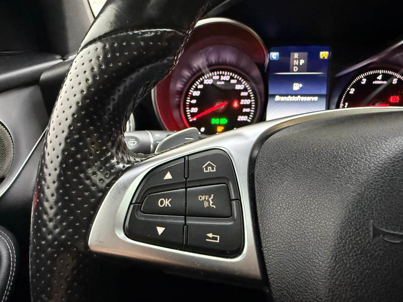 Met de hulp van vier camera's, biedt de 360 graden camera op deze auto een panoramisch zicht, wat bijzonder nuttig is bij het parkeren en manoeuvreren. Als u de adaptive cruise control inschakelt, regelt de auto zelf de snelheid en de afstand tot de auto voor u. Uw smartphone is tegenwoordig de sleutel tot heel veel. Ook voor deze auto. Remote services, noemen we dat. Waar u ook bent, contact houden is een eitje. Ook de akoestiek in de auto wordt optimaal benut door het high performance audiosysteem. Een extra gevoel van veiligheid: de kruisend verkeer detectie anticipeert en waarschuwt als aanrijding met een tegenligger dreigt. Met dashboard met spraakbediening, navigatiesysteem met harde schijf, achteropkomend verkeer waarschuwing, automatische airconditioning, schakel flippers aan het stuur en regensensor is deze Mercedes-Benz helemaal compleet.