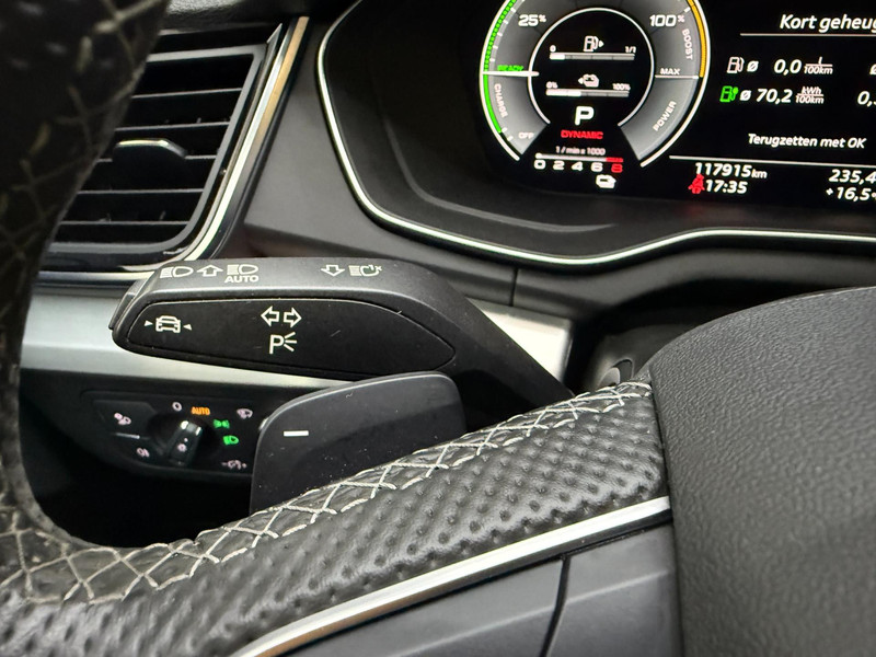 Een gevisualiseerd overzicht van alle belangrijke functies wordt geleverd door het digitale dashboard. Omdat u nou eenmaal geen ogen in uw achterhoofd heeft, is het altijd lastig om achteruit te rijden zonder brokken te maken. De achteruitrijcamera lost dat probleem op. Qua muziekbeleving onderweg gaat deze auto ook een stevige stap verder dankzij het high performance audiosysteem. Bij de luxe van deze auto hoort ook automatische airconditioning. De auto neemt u werk uit handen doordat hij zelf veel in de gaten houdt. Een regensensor en een automatisch inschakelbare verlichting nemen waar wanneer de ruitenwissers en het licht aan moeten. Ook origineel navigatiesysteem, schakel flippers aan het stuur, DAB ontvangst, cruise control, keyless entry en buitentemperatuurmeter horen tot de voorzieningen op deze auto.