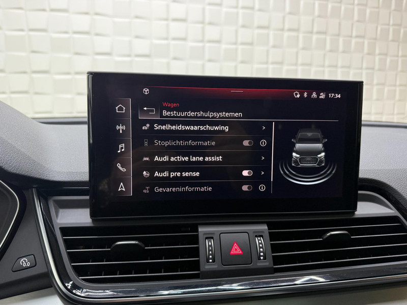 De nieuwste veiligheidssystemen komen in deze Audi Q5 Sportback samen. U hoeft onderweg uw hoofd nooit te draaien of uw blik te verplaatsen om dashboard-info af te lezen. De head-up display projecteert alles op de voorruit. U kunt rijden als een jachtpiloot. Tijdens de rit hebt u altijd een bijrijder, want de verkeersbord-detectie leest de borden langs de weg en projecteert ze voor u op het instrumentarium. Met het Lane-keeping systeem gaat u nooit onbedoeld over de streep. Bovenop deze veiligheidsfeatures heeft deze Audi bovendien accident avoidance system, forward collision warning system, hill hold functie, brake assist, vermoeidheidsherkenning en bandenspanningcontrolesysteem.