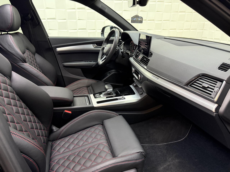 Een hoge mate van degelijkheid, uitstekende wegligging en veel comfort; het zijn unieke eigenschappen waarmee Duitse auto's zich onderscheiden. De verschillende elementen van de S-Line styling accentueren de dynamische lijnvoering van deze Q5 Sportback. Met een viercilinder motor en een automatische transmissie beschikt deze Audi over uitstekende prestaties. Ontdek de fantastische prestaties van vierwielaandrijving met deze 4x4! 's Winters komen de verwarmbare voorstoelen heerlijk van pas. Scherpe bochten, pittige acceleraties? In de sportstoelen blijft u altijd in positie. Het interieur baadt in daglicht dankzij het elektrisch bediende glazen panoramadak. Een praktische extra is de elektrisch bedienbare achterklep die opent en sluit met een druk op de knop. In de winter wil iedereen mee. Zou dat komen door de verwarmde achterbank? Ook 21 inch lichtmetalen velgen, LED koplampen, warmtewerend glas, in delen neerklapbare achterbank, LED-achterlichten en verwarmde ruitensproeiers horen tot de voorzieningen op deze auto.