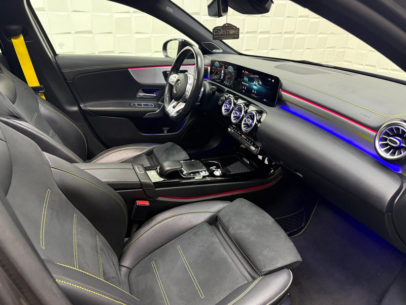 Decennia aan onverwoestbare klasse en prestaties. Dat haalt u in huis met deze fraaie Mercedes. 'The best or nothing', zoals het merk zelf zegt. De uitgesproken AMG-styling voegt een reeks sportieve accenten aan de vormgeving toe. Een viercilinder motor en een automatische transmissie zorgen voor de uitstekende prestaties van deze auto. Onder alle weersomstandigheden ligt deze auto als een blok op de weg dankzij de vierwielaandrijving. Van binnen is deze Mercedes-Benz A-klasse mooi uitgevoerd met een classy lederen interieur. Neem plaats op de comfortabele stoelen. Dankzij de elektrische bediening en het geheugen is het eenvoudig om hierin de beste zitpositie te vinden. Zon en frisse lucht krijgen vrij spel dankzij het elektrisch bediende glazen panoramadak. Met een druk op de knop gaat de elektrische achterklep open. Verblinding van tegenliggers is er niet meer bij, dankzij de koplampen met matrix LED-verlichting. En toch de kwaliteit van daglicht in het donker! Tot de uitrusting van deze Mercedes-Benz behoren ook 19 inch lichtmetalen velgen, AMG-styling, warmtewerend glas, in delen neerklapbare achterbank, verstelbare lendensteunen en variabele stuurbekrachtiging.