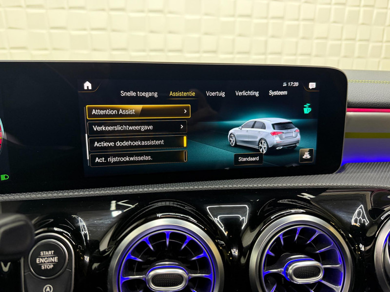 In de Mercedes-Benz A-klasse heeft uw veiligheid en die van uw omgeving prioriteit. Bij de veiligheidssystemen van deze Mercedes-Benz hoort ook de verkeersbord-detectie. Die leest tijdens het rijden als het ware met u mee en attendeert u op de significante verkeersborden langs en boven de weg. Met het Lane-keeping systeem komt u nooit per ongeluk buiten de rijstrook. Een fietser of ander voertuig in de dode hoek ziet u gemakkelijk over het hoofd. De actieve dodehoekdetectie signaleert meteen elke risicosituatie. De veiligheid van deze auto wordt verder verhoogd door head-up display, accident avoidance system, forward collision warning system, hill hold functie, brake assist en vermoeidheidsherkenning.