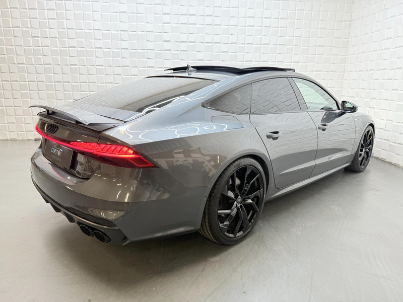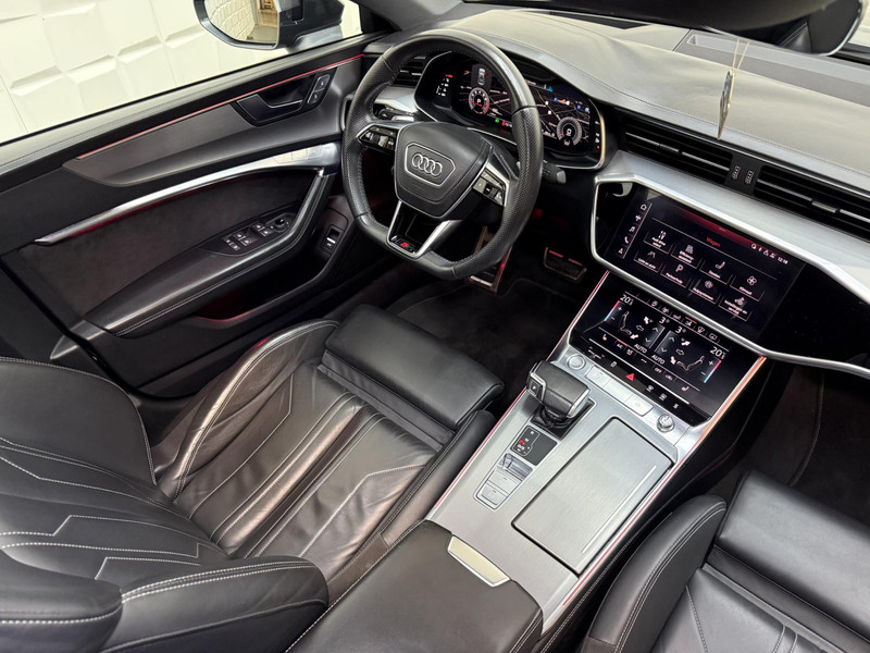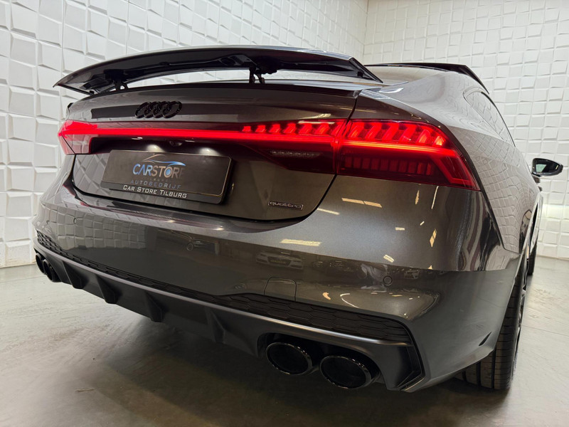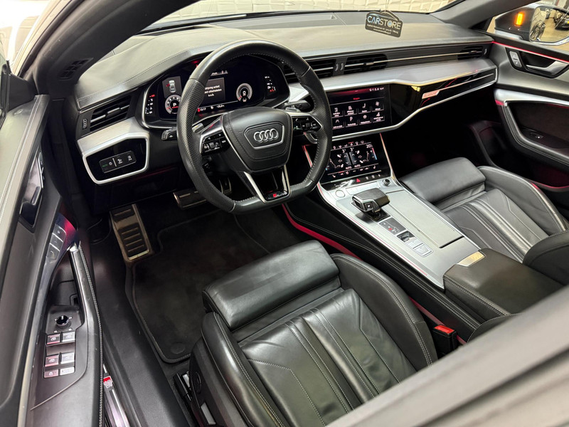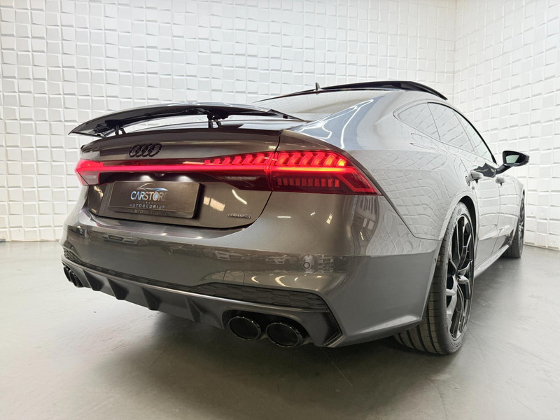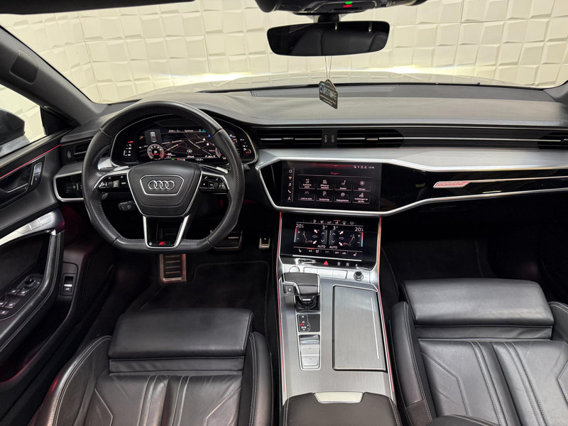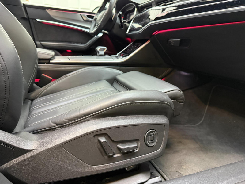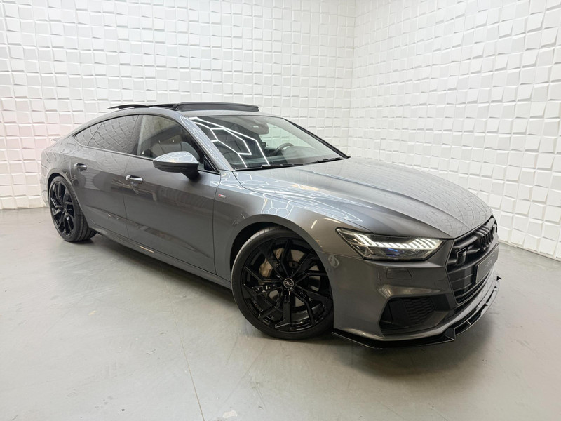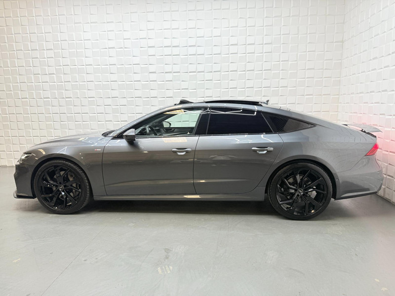 De Audi A7 Sportback vertegenwoordigt het beste van degelijk Duits design. De S-Line styling voegt een aantal uitgesproken sportieve accenten toe. Een krachtige motor geeft deze auto zijn sportieve prestaties. Een mooie, constante en solide ligging op de weg: dat is het voordeel van luchtvering. 4x4, 4WD... Deze auto staat maximaal stevig op de banden dankzij de vierwielaandrijving. Het lederen interieur geeft deze auto luxe en klasse. Neem plaats op de comfortabele stoelen. Dankzij de elektrische bediening en het geheugen is het eenvoudig om hierin de beste zitpositie te vinden. Het interieur lijkt groter en ruimtelijker dankzij het elektrisch bedienbare glazen panoramadak. De elektrisch bedienbare achterklep opent met een druk op de knop. Bij de rijke uitrusting horen ook 21 inch lichtmetalen velgen, sportonderstel, adaptieve LED-koplampen, warmtewerend glas, in delen neerklapbare achterbank en LED-achterlichten.