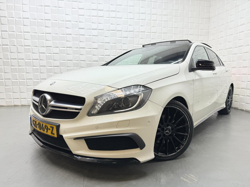 De Mercedes-Benz A-klasse vertegenwoordigt het beste van degelijk Duits design. De AMG-styling accentueert het sportieve karakter van deze Mercedes-Benz. De aandrijving van deze Mercedes-Benz wordt verzorgd door een viercilinder motor en een automatische transmissie. Het lederen interieur voegt stijl en allure toe. Dankzij de elektrische stoelbediening is het gemakkelijk om de optimale zitpositie te vinden. Het panoramadak geeft extra sfeer aan het interieur en biedt een prachtige doorkijk naar buiten. In het donker zorgt de xenonverlichting voor een goed zicht op de weg. In deze Mercedes-Benz profiteert u onder andere ook van: 18 inch lichtmetalen velgen, AMG-styling, sportonderstel, warmtewerend glas, in delen neerklapbare achterbank en snelheidsafhankelijke stuurbekrachtiging.