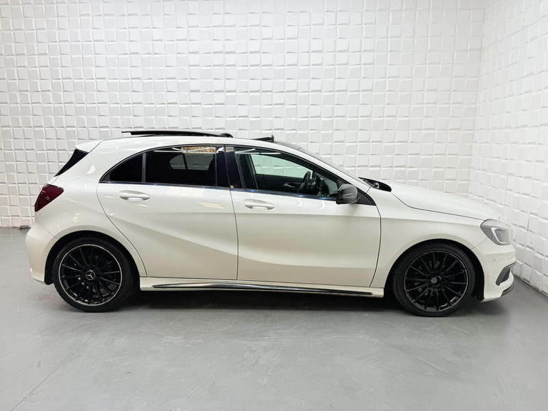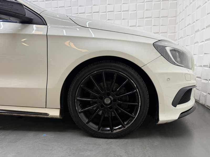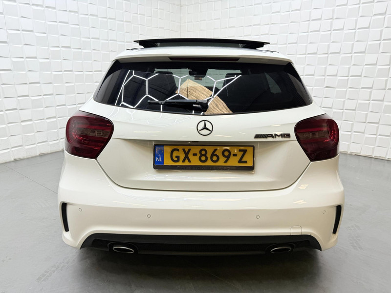 De Mercedes-Benz A-klasse vertegenwoordigt het beste van degelijk Duits design. De AMG-styling accentueert het sportieve karakter van deze Mercedes-Benz. De aandrijving van deze Mercedes-Benz wordt verzorgd door een viercilinder motor en een automatische transmissie. Het lederen interieur voegt stijl en allure toe. Dankzij de elektrische stoelbediening is het gemakkelijk om de optimale zitpositie te vinden. Het panoramadak geeft extra sfeer aan het interieur en biedt een prachtige doorkijk naar buiten. In het donker zorgt de xenonverlichting voor een goed zicht op de weg. In deze Mercedes-Benz profiteert u onder andere ook van: 18 inch lichtmetalen velgen, AMG-styling, sportonderstel, warmtewerend glas, in delen neerklapbare achterbank en snelheidsafhankelijke stuurbekrachtiging.