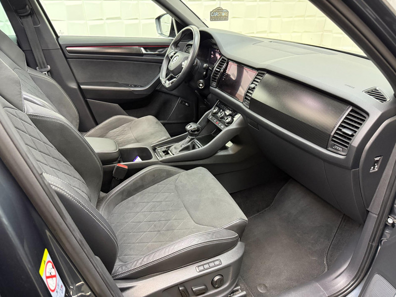 Laat u niets wijsmaken, deze Skoda Kodiaq biedt alles wat u van een auto verlangt. Een viercilinder motor en een automatische transmissie zorgen voor de uitstekende prestaties van deze auto. Met behulp van de vierwielaandrijving kan deze auto met elk soort weer en wegdek overweg. Wat kiest u: luxe, ruimte of gemak? Wacht, kiezen hoeft niet! U krijgt het allemaal: een lederen interieur, een derde zitrij én een elektrisch bedienbare achterklep. Neem plaats op de comfortabele stoelen. Dankzij de elektrische bediening en het geheugen is het eenvoudig om hierin de beste zitpositie te vinden. Een heerlijke hoeveelheid daglicht zorgt voor een riant en ruimtelijk effect door het glazen panoramadak. Bij de uitrusting van deze auto horen onder meer LED koplampen en in delen neerklapbare achterbank.