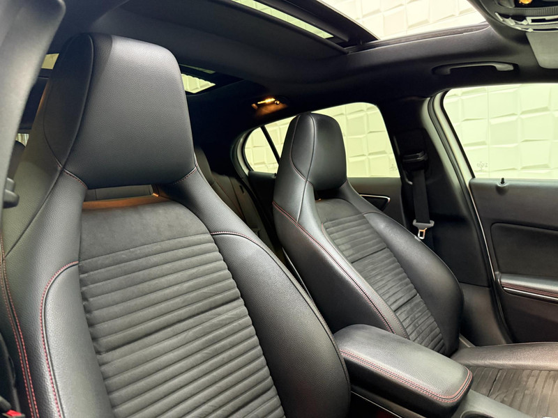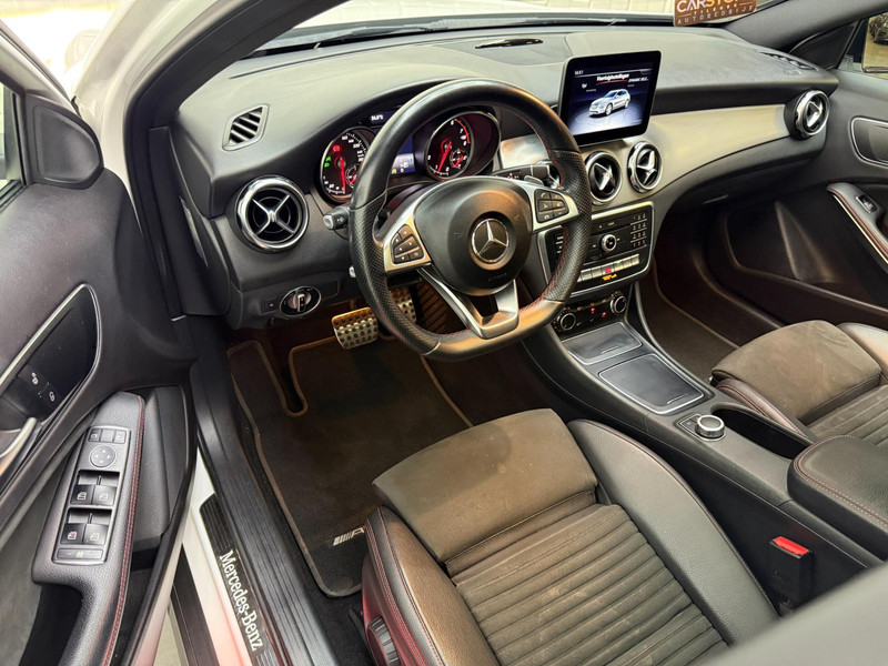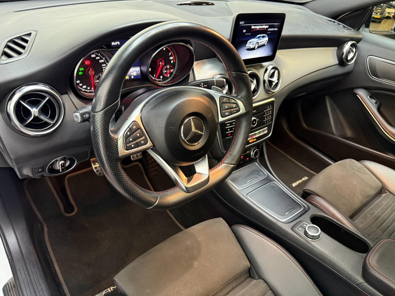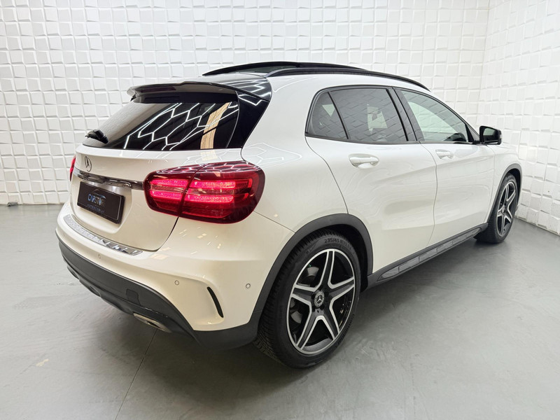 U merkt het aan de look and feel van deze auto: dit is kwaliteit. De Mercedes-Benz GLA-klasse is ontworpen volgens de Duitse opvattingen van kwaliteit en degelijkheid, maar biedt tegelijk een hoge mate van comfort en uitstekende rijkwaliteiten. De AMG-styling accentueert het sportieve karakter van deze Mercedes-Benz. De aandrijving van deze Mercedes-Benz wordt verzorgd door een viercilinder motor en een automatische transmissie. Topklasse: daar hoort leren bekleding absoluut bij. ‘s Winters op pad gaan kan een behoorlijke uitdaging zijn. Daarom is deze Mercedes-Benz GLA-klasse voorzien van weldadige verwarmbare voorstoelen. Opvallend zijn de stoere sportstoelen, die zorgen voor een onwrikbare zit in de scherpe bochten. Volop licht en ruimtelijk gevoel geeft het elektrische bediende glazen panoramadak. Zoals u weet, liggen de autosleutels altijd onderin de boodschappentas die u sjouwt. Geen probleem bij deze Mercedes-Benz GLA-klasse. De token in uw jaszak wordt van dichtbij gesignaleerd door de keyless entry en alle sloten gaan automatisch open. Bij de uitrusting van deze auto horen onder meer 19 inch lichtmetalen velgen, sportonderstel, aluminium dakrailing, warmtewerend glas, verstelbare lendensteunen, pearl metallic lak, elektrisch bedienbare ramen achter, elektrisch inklapbare buitenspiegels, led-dagrijverlichting en in delen neerklapbare achterbank.