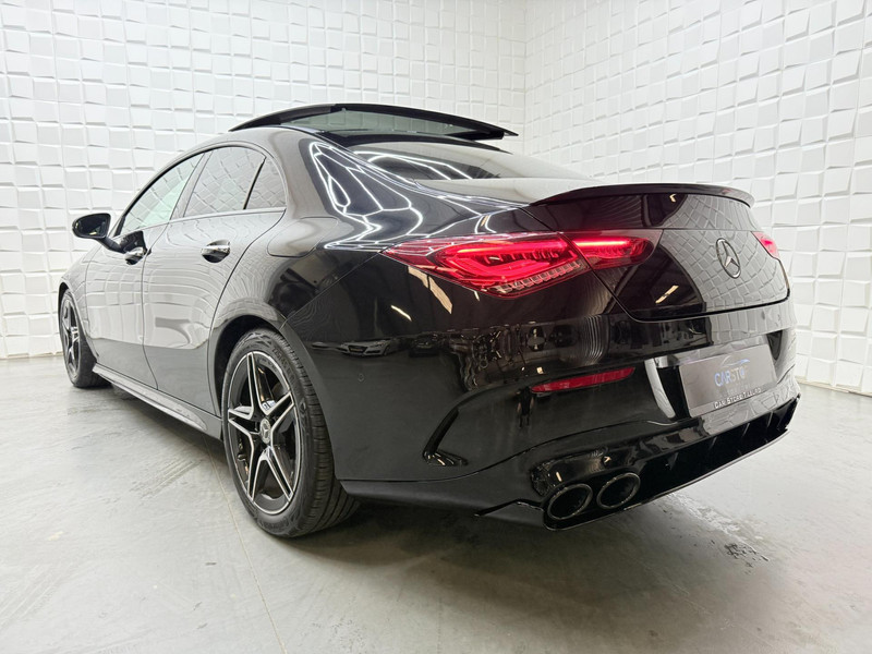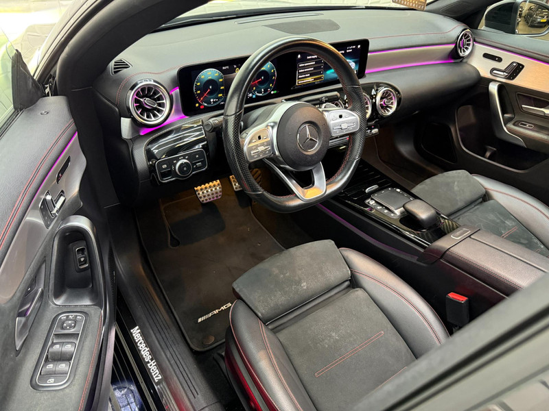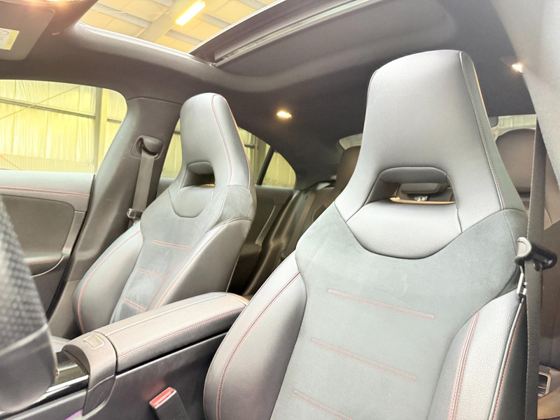 Uitmuntende prestaties, dynamische rijeigenschappen en bakken vol met rijplezier, deze Mercedes-Benz CLA-klasse levert het allemaal. Een beetje meer aandacht en een stoere uitstraling? Daar zorgt de AMG-styling voor. De aandrijving van deze Mercedes-Benz wordt verzorgd door een viercilinder motor en een automatische transmissie. Iedereen kan het beamen: een lederen interieur is levend en luxe. Om van comfort nog maar te zwijgen. En dat komt allemaal nog beter tot z'n recht dankzij het elektrisch bediende glazen panorama dak. U past de stoelen moeiteloos aan, ze zijn elektrisch in te stellen en hebben bovendien een geheugen. Voorzien van matrix LED-verlichting. De auto dimt precies dat deel van de lichtstraal waar de voor- of tegenliggers in rijden. De overige segmenten blijven aan en verlichten de weg. Bij de rijke uitrusting horen ook 18 inch lichtmetalen velgen, AMG-styling, extra getint glas, in delen neerklapbare achterbank, LED-achterlichten en verstelbare lendensteunen.