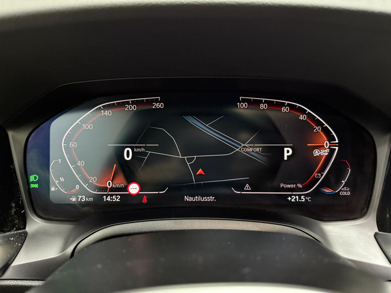 Het digitale dashboard rekent mee, denkt mee en rijdt mee. Alle info overzichtelijk in beeld, overal. Kom maar, kom maar, kom maar... ho! Prettig hoor, zo'n achteruitrijcamera. Een slim verborgen extra is de elektrisch inklapbare trekhaak. Connected Services voegt nog meer comfort en veiligheid toe aan deze auto. De bediening van het audio-installatiesysteem en het navigatiesysteem met harde schijf gebeurt met knoppen op het stuur en als u wilt zelfs met uw stem. De audio is overigens voorzien van DAB-radio voor een altijd heldere ontvangst. Ook is de BMW uitgerust met: achteropkomend verkeer waarschuwing, automatische airconditioning, schakel flippers aan het stuur, regensensor, cruise control en keyless Go.