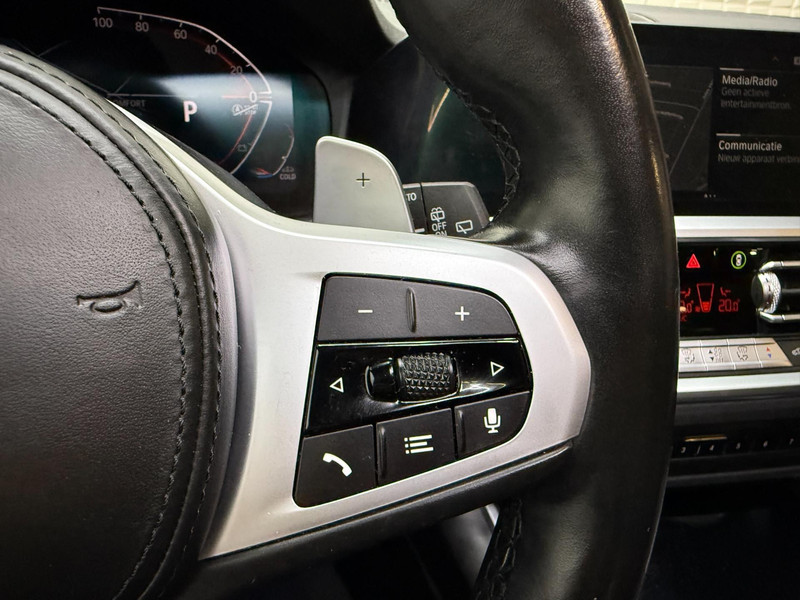 Het digitale dashboard rekent mee, denkt mee en rijdt mee. Alle info overzichtelijk in beeld, overal. Kom maar, kom maar, kom maar... ho! Prettig hoor, zo'n achteruitrijcamera. Een slim verborgen extra is de elektrisch inklapbare trekhaak. Connected Services voegt nog meer comfort en veiligheid toe aan deze auto. De bediening van het audio-installatiesysteem en het navigatiesysteem met harde schijf gebeurt met knoppen op het stuur en als u wilt zelfs met uw stem. De audio is overigens voorzien van DAB-radio voor een altijd heldere ontvangst. Ook is de BMW uitgerust met: achteropkomend verkeer waarschuwing, automatische airconditioning, schakel flippers aan het stuur, regensensor, cruise control en keyless Go.
