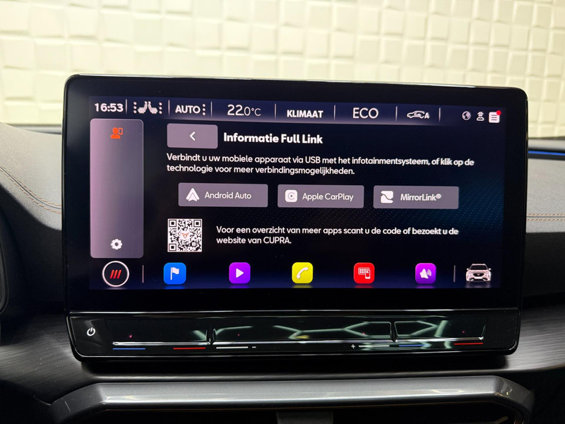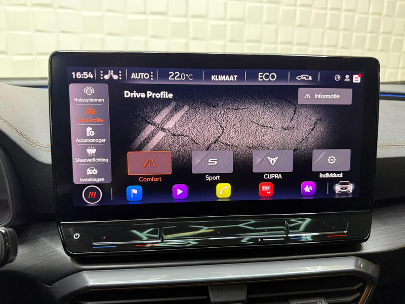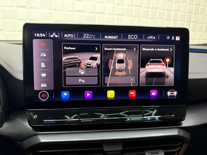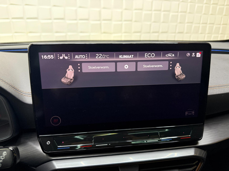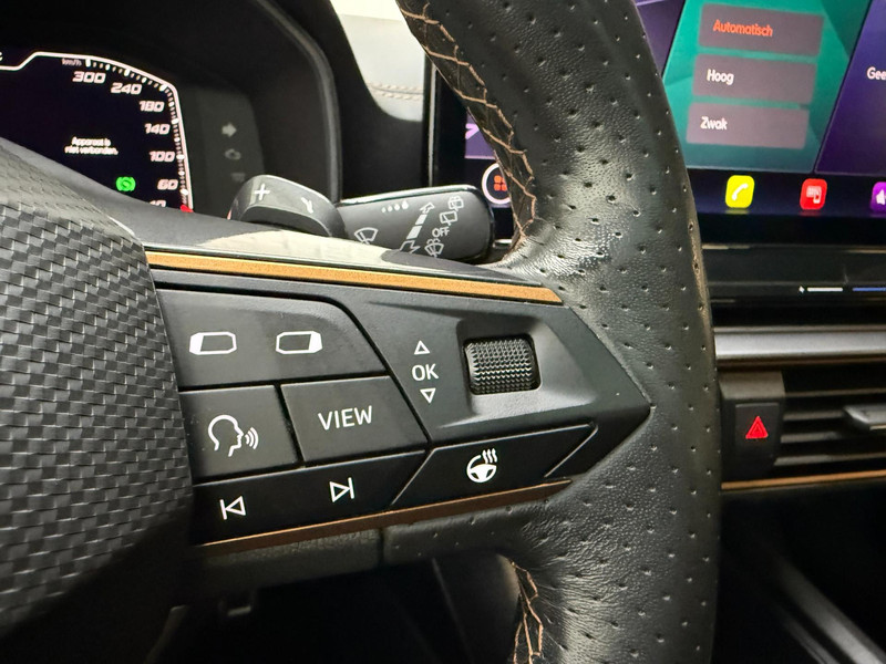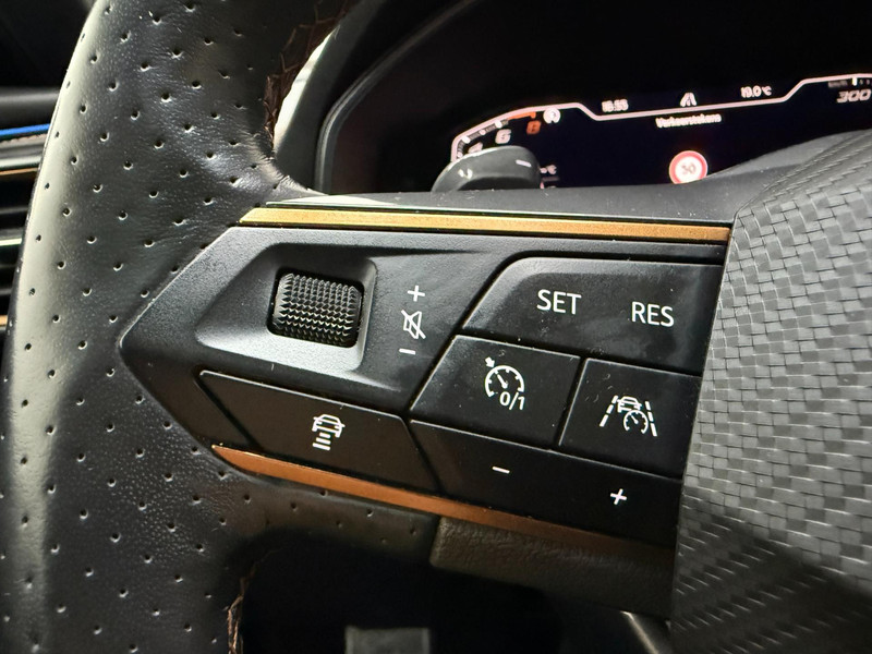 De geavanceerde technologie in deze Cupra is in staat om onderweg het verkeer om u heen te monitoren en er op te reageren. Zo hebt u als het ware een automatische co-piloot aan boord. De actuele snelheidslimiet, een inhaalverbod en andere verkeersborden. De verkeersborddetectie ondersteunt u tijdens elke rit. Indien u onbedoeld de rijstrook lijkt te verlaten, reageert het Lane-keeping systeem meteen en corrigeert. Ook als uw aandacht even verslapt, blijft de forward collision warning bij de wekker. Dreigt er een botsing met een voor- of tegenligger, dan waarschuwt het systeem direct. Bovenop deze veiligheidsfeatures heeft deze Cupra bovendien dodehoekdetectie, accident avoidance system, hill hold functie, vermoeidheidsherkenning en bandenspanningcontrolesysteem.