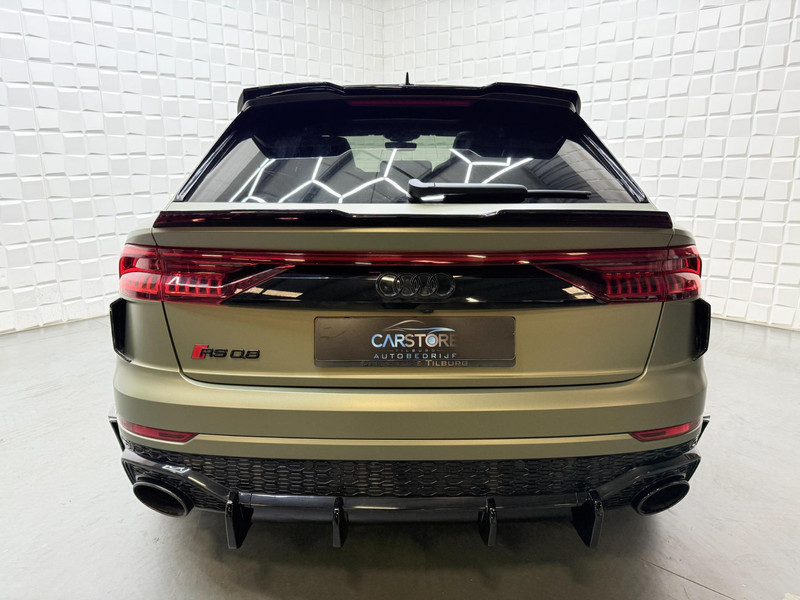 Met zijn compromisloze design, zijn geweldige vermogen en zijn uitgekiende techniek staat deze Audi RSQ8 garant voor sportieve topprestaties. Het sportieve uiterlijk is meegeleverd in de vorm van de S-Line styling. Met een achtcilinder motor en een automatische transmissie beschikt deze Audi over uitstekende prestaties. Ontdek de fantastische prestaties van vierwielaandrijving met deze 4x4! We nemen u in gedachten even mee. Stop uw bagage moeiteloos achterin dankzij de elektrisch bediende achterklep, neem plaats achter het stuur en zie meteen het luxe lederen interieur. Even het elektrisch bediende glazen panorama dak open en rijden maar! Dankzij de elektrische stoelbediening is het gemakkelijk om de optimale zitpositie te vinden. De achterbankverwarming, het verwarmbare stuurwiel en de verwarmbare voorstoelen brengen passagiers en bestuurder snel weer op temperatuur, ongeacht hoe koud het buiten is. Een mooie, constante en solide ligging op de weg: dat is het voordeel van luchtvering. De koplampen met matrix LED-verlichting geven daglichtkwaliteit zonder tegenliggers te hinderen. Natuurlijk behoren 22 inch lichtmetalen velgen, warmtewerend glas, trailer assistent, in delen neerklapbare achterbank, LED-achterlichten en verstelbare lendensteunen ook tot de uitrusting van deze complete auto.