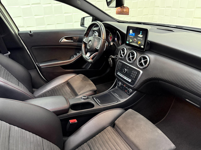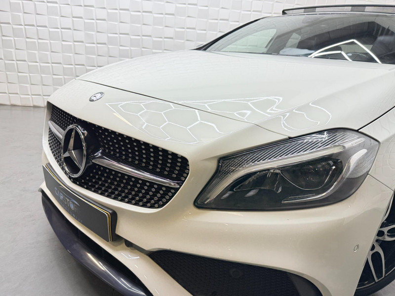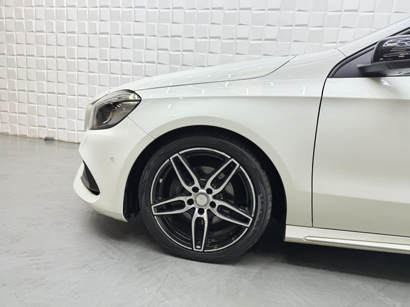De Mercedes-Benz A-klasse vertegenwoordigt het beste van degelijk Duits design. De uitgesproken AMG-styling voegt een reeks sportieve accenten aan de vormgeving toe. De aandrijving van deze Mercedes-Benz wordt verzorgd door een viercilinder motor en een automatische transmissie. De leren bekleding is niet alleen mooi om te zien, maar zorgt ook voor comfort en een rijke uitstraling. Mooi om te zien en heerlijk om in te zitten zijn de sportstoelen, die u onderweg optimale ondersteuning geven. Het glazen panoramadak biedt u een breed zicht op de omgeving. De uitmonstering van deze auto wordt gecompleteerd door onder meer 18 inch lichtmetalen velgen, LED koplampen, AMG-styling, sportonderstel, halflederen bekleding en warmtewerend glas.