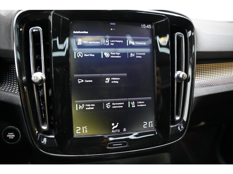 De nieuwste veiligheidssystemen komen in deze Volvo XC40 samen. De camera van de verkeersborddetectie herkent verschillende soorten verkeersborden en toont deze op het dashboard. Het Lane-keeping systeem registreert permanent of u binnen de lijnen van de rijstrook blijft; dwaalt u onbedoeld af, dan waarschuwt het systeem en corrigeert de koers. Forward collision warning waarschuwt bij een dreigende aanrijding en vermindert de gevolgen van een ongeval. Ook helpen het accident avoidance system, hill hold functie, brake assist, vermoeidheidsherkenning en bandenspanningcontrolesysteem, uw rit tot een veilige rit te maken.