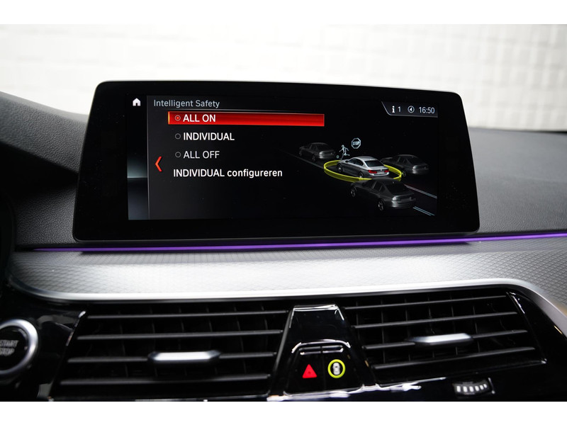Zoals u mag verwachten van deze BMW 5-serie is hij uitgerust met een reeks aan actieve veiligheidssystemen. De actuele snelheidslimiet, een inhaalverbod en andere verkeersborden; de verkeersborddetectie ondersteunt u tijdens elke rit. Het Lane-keeping systeem zorgt voor een automatisch constante positie binnen de rijstrook. Afdwalen is uitgesloten. De actieve dodehoekdetectie helpt ongelukken te voorkomen. Ook helpen het head-up display, accident avoidance system, forward collision warning system, hill hold functie, brake assist en vermoeidheidsherkenning, uw rit tot een veilige rit te maken.