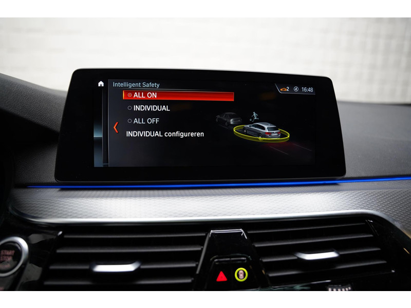 Zoals u mag verwachten van deze BMW 5-serie Touring is hij uitgerust met een reeks aan actieve veiligheidssystemen. Tijdens de rit hebt u altijd een bijrijder, want de verkeersbord-detectie leest de borden langs de weg en projecteert ze voor u op het instrumentarium. Voor meer veiligheid detecteert deze auto het risico van een aanrijding tijdig via de forward collision warning. De veiligheidssystemen in deze auto nemen het zelfs waar als de bestuurder tekenen van vermoeidheid vertoont, en waarschuwen dan met een duidelijk signaal. De auto is ook uitgerust met head-up display, accident avoidance system, hill hold functie, brake assist en bandenspanningcontrolesysteem.
