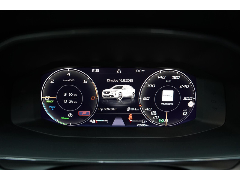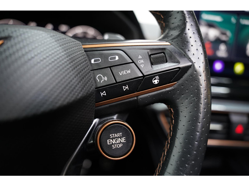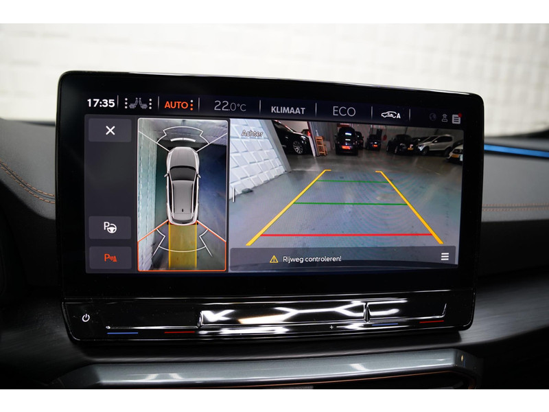 Voor een goed en duidelijk overzicht onderweg is het digitale dashboard uitermate slim ingedeeld. Of u nu achteruit rijdt, parkeert of een smalle straat inslaat, de 360 graden camera op deze auto, mogelijk gemaakt door vier camera's, biedt een perfect beeld van uw omgeving. Adaptive cruise control is veilig en comfortabel. De snelheidsregelaar houdt automatisch afstand tot het voertuig dat voor u rijdt. Spraaksturing luistert naar uw stem en bedient de belangrijkste voertuigfuncties. Fijn, zo'n trekhaak. Maar niet constant nodig. Daarom heeft deze CUPRA Formentor een elektrisch inklapbare trekhaak. De uitrusting van deze CUPRA is met connected drive services, origineel navigatiesysteem, automatische airconditioning, draadloos opladen, DAB ontvangst en regensensor behoorlijk compleet.