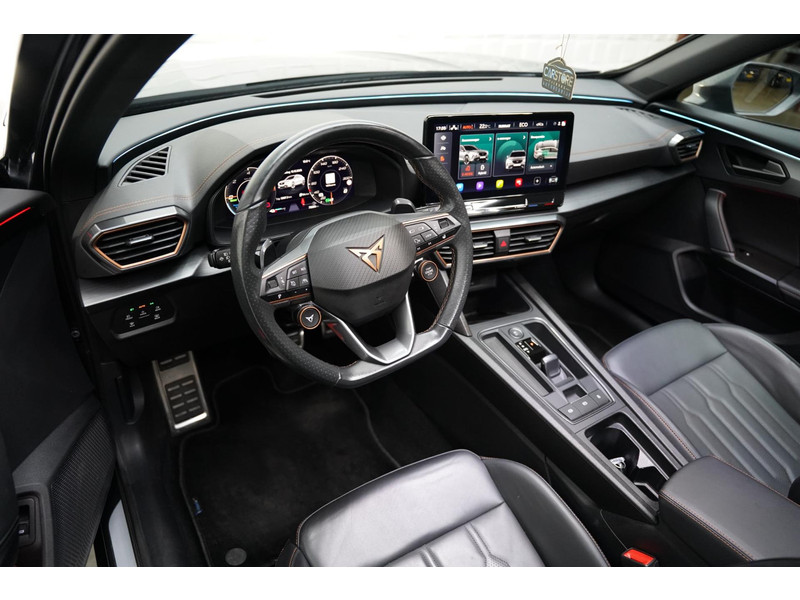 Ontspannen en zorgeloos autorijden, dat doet u met deze CUPRA Formentor. Met een viercilinder motor en een automatische transmissie beschikt deze CUPRA over uitstekende prestaties. Het lederen interieur springt meteen in het oog; maar wat dacht u van het ultragemakkelijke elektrisch bediende glazen panorama dak en de elektrisch bedienbare achterklep? Neem plaats op de comfortabele stoelen. Dankzij de elektrische bediening en het geheugen is het eenvoudig om hierin de beste zitpositie te vinden. Een verwarmd stuurwiel overbodige luxe? Wacht maar tot het kouder wordt! Dankzij de matrix LED-verlichting geven de koplampen ook in het donker daglicht. Ook 20 inch lichtmetalen velgen, extra getint glas, in delen neerklapbare achterbank, LED-achterlichten, verstelbare lendensteunen en snelheidsafhankelijke stuurbekrachtiging zijn aan boord.